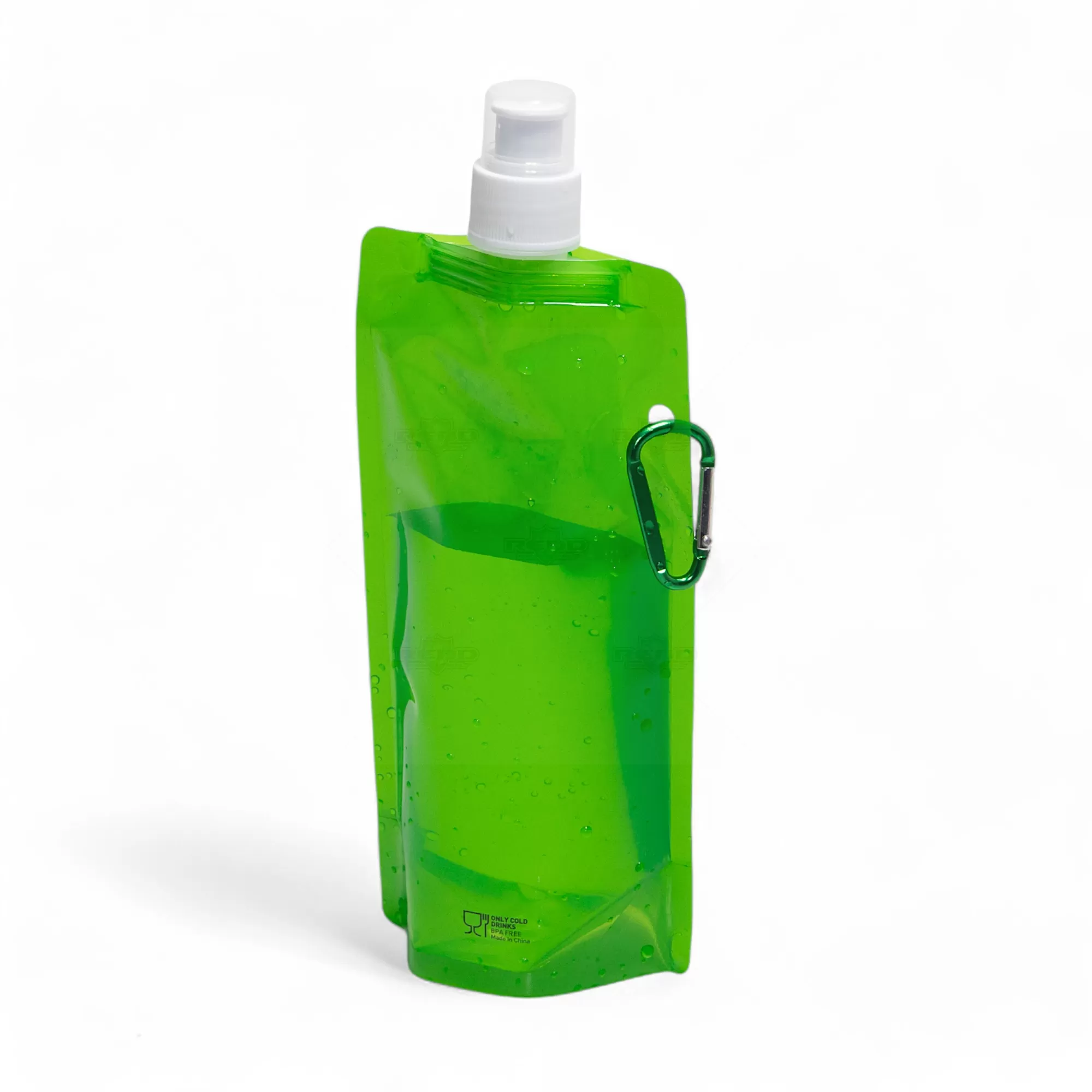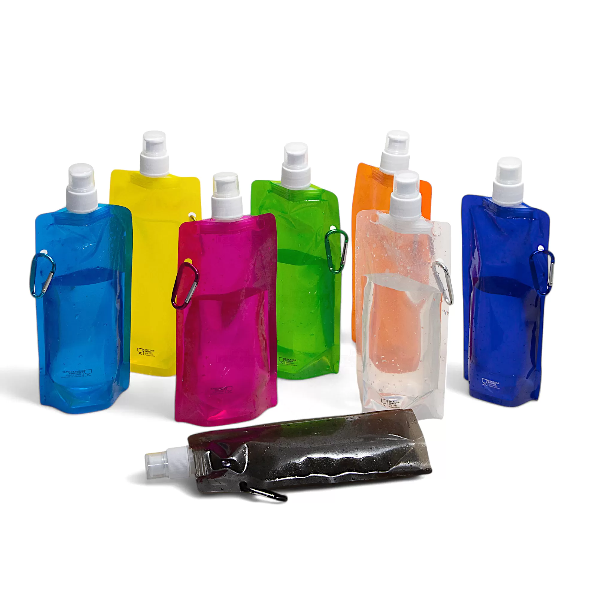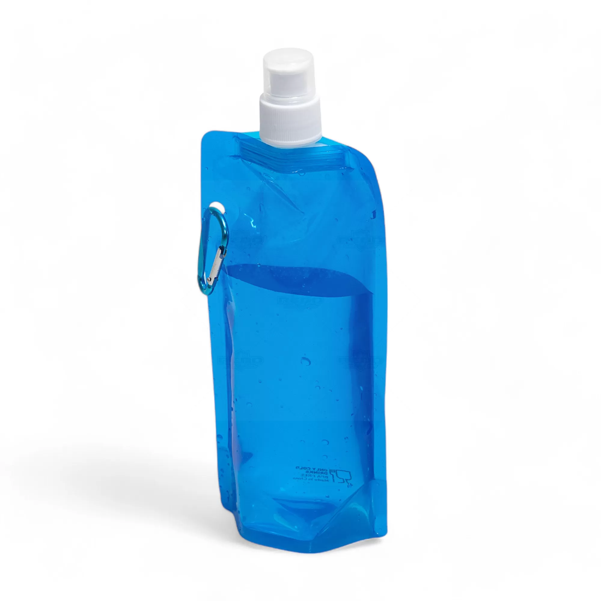 Squeeze dobrável personalizado, produzido em plástico PE com capacidade de 460ml, com tampa protetora, bico de fechamento e mosquetão de alumínio facilitando o transporte e fixação em bolsas e mochilas. Ideal para divulgar sua empresa em eventos corporativos, brindes personalizados e campanhas promocionais.