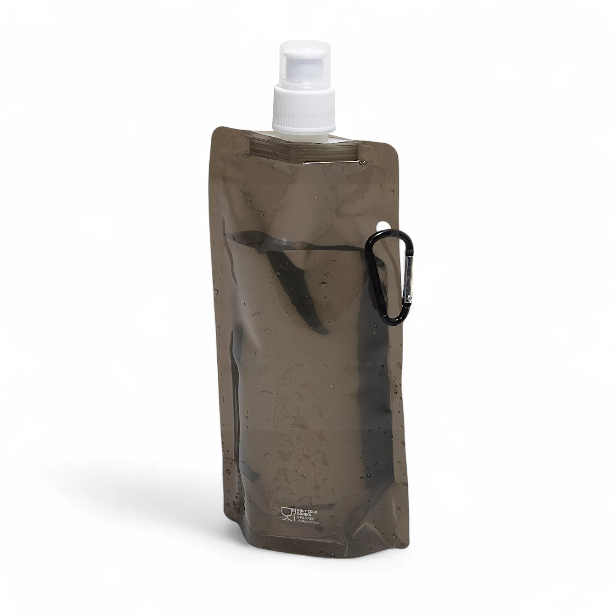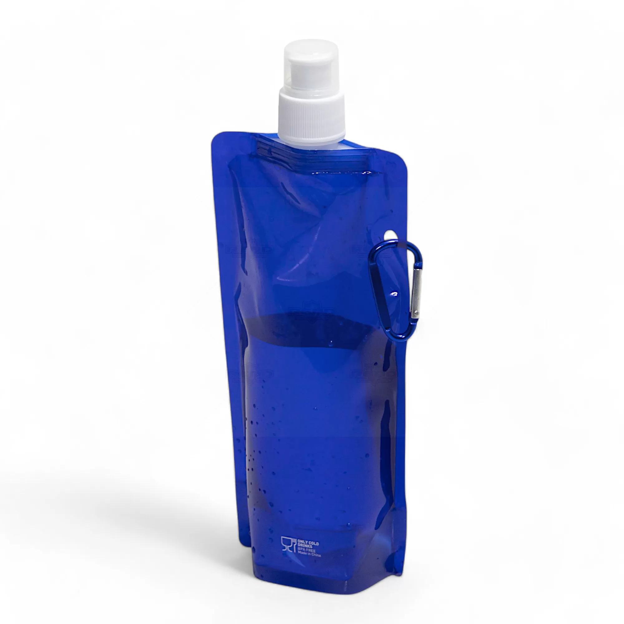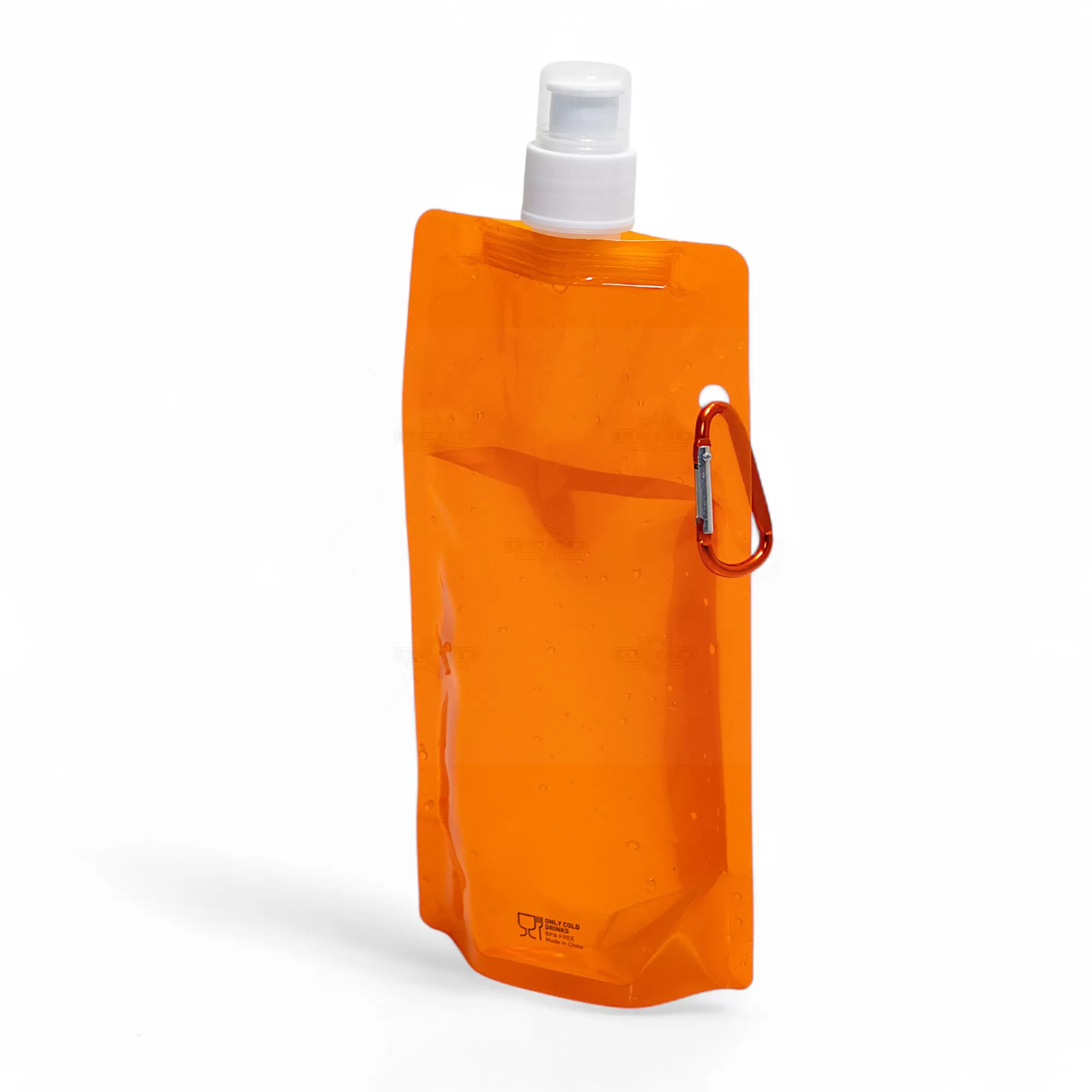 Squeeze dobrável personalizado, produzido em plástico PE com capacidade de 460ml, com tampa protetora, bico de fechamento e mosquetão de alumínio facilitando o transporte e fixação em bolsas e mochilas. Ideal para divulgar sua empresa em eventos corporativos, brindes personalizados e campanhas promocionais.