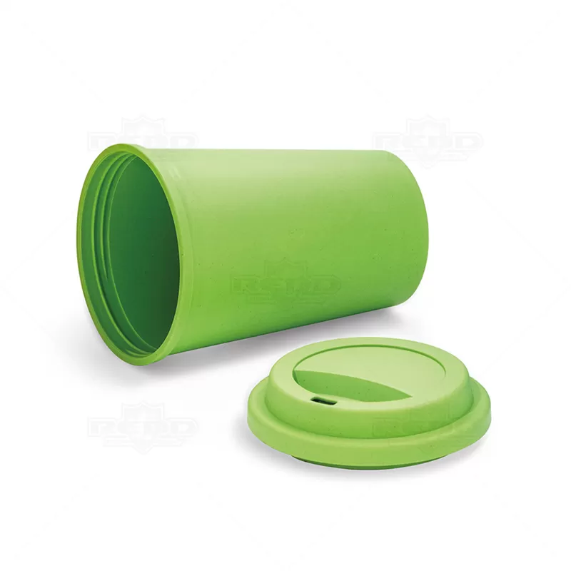 Copo ecológico personalizado produzido em fibra de bambu e plástico PP com capacidade de 450ml, possui tampa rosqueável com abertura para o consumo da sua bebida preferida. Ideal para brindes personalizados e eventos corporativos.
