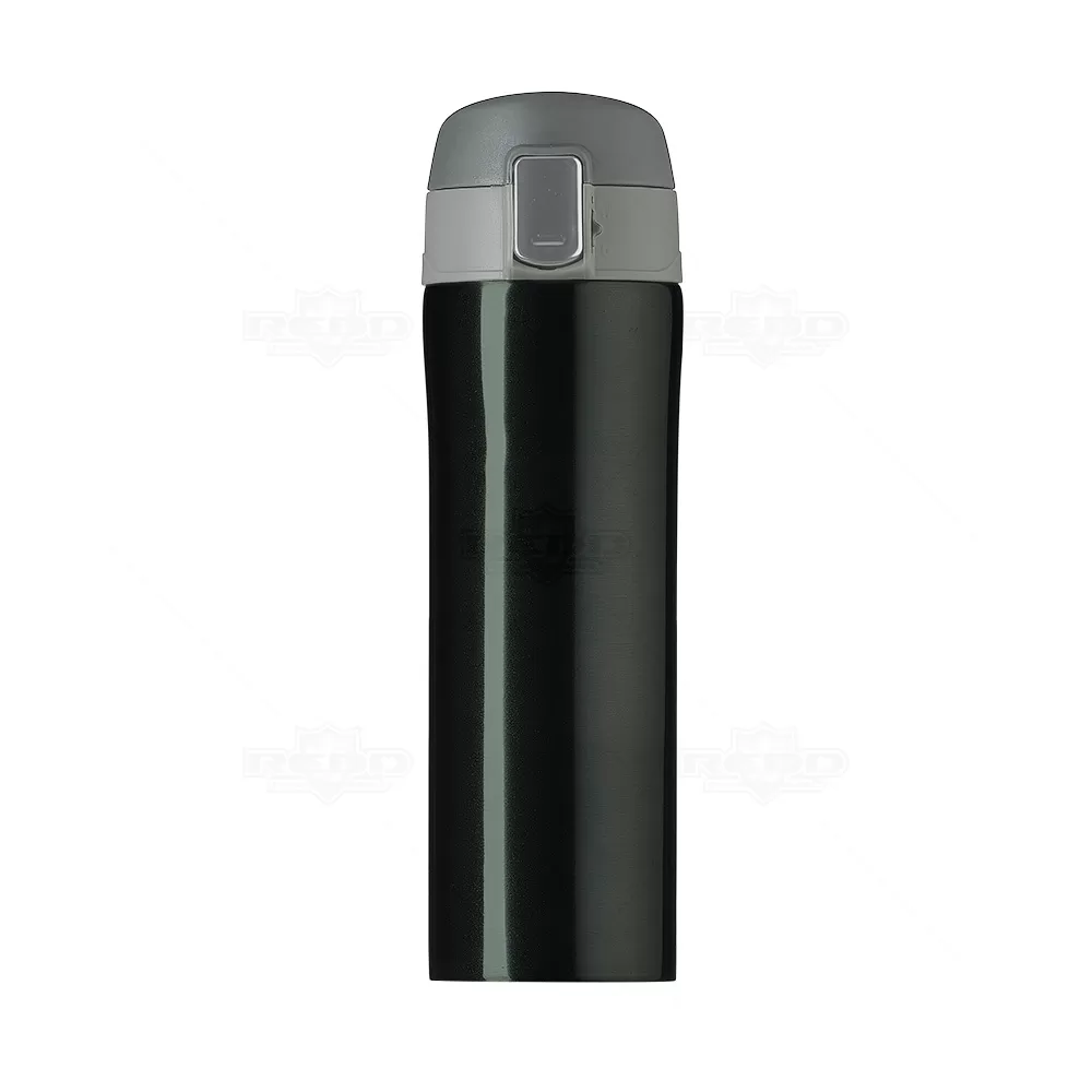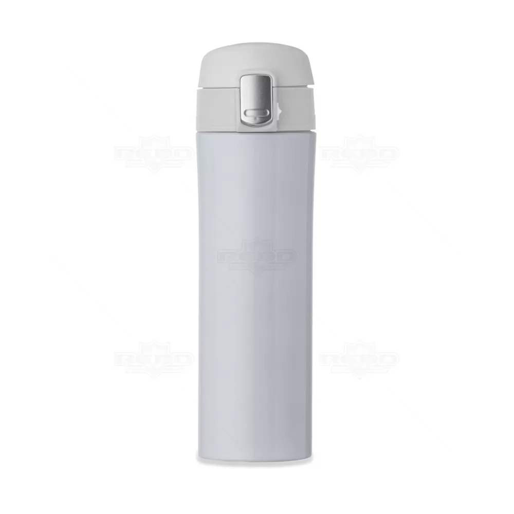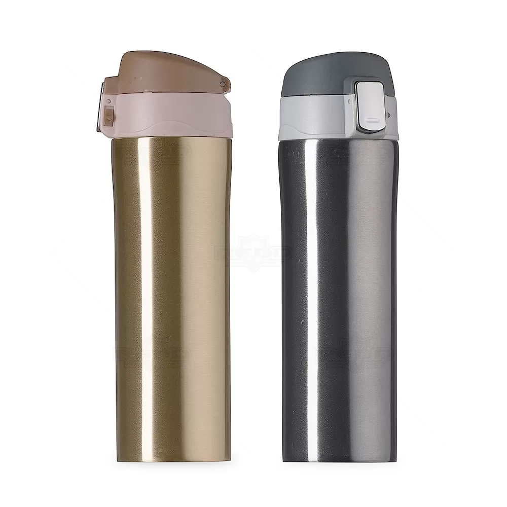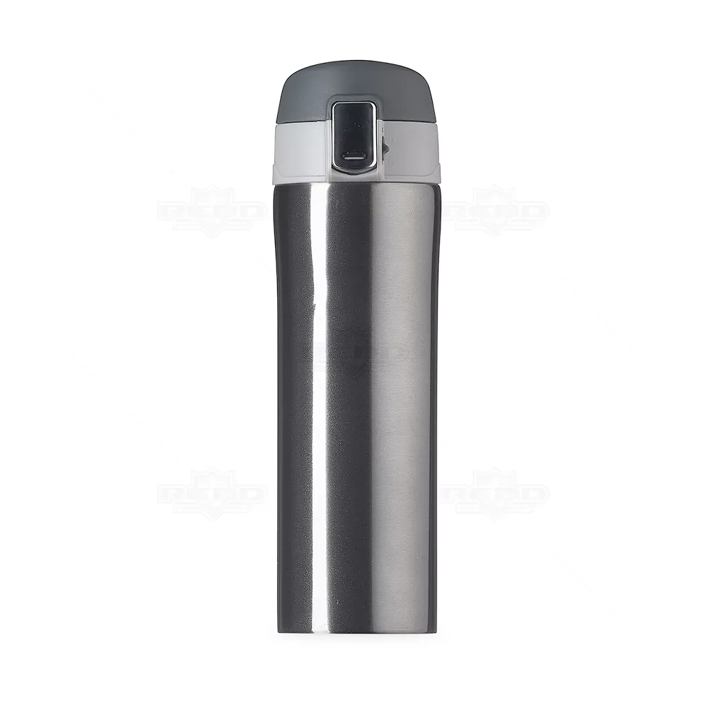 Squeeze térmico personalizado, produzido em metal e com capacidade de de 450 ml. Possui interior revestido em inox, tampa com sistema de vedação evitando o vazamento do líquido, botão central para abertura e trava lateral. Ideal para divulgar sua empresa em eventos corporativos, brindes personalizados e campanhas promocionais.