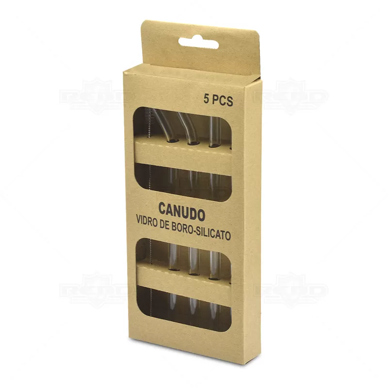 Kit canudo personalizado, produzido em vidro borossilicato, possui 1 escova para limpeza, 1 embalagem em papelão, 2 canudos retos e 2 canudos curvados. O canudo tem um material resistente ao calor e aos elementos químicos, não quebra facilmente e colabora para preservação do meio ambiente, pois é reutilizável. Ideal para brindes promocionais, eventos corporativos e ambientais.