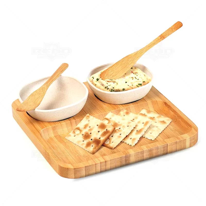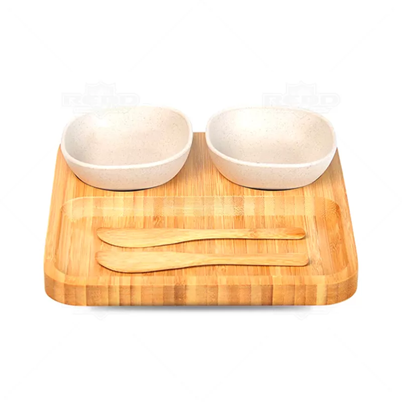 Kit petisqueira personalizado para petiscos e patês. O conjunto acompanha dois potes produzidos em fibra de Bambu, tábua especial moldada e duas espátulas 14cm, ambos confeccionados em Bambu. Utilizamos o Bambu, por ser uma matéria prima ecológica, autossustentável e com alta resistência. Além de versátil, o Bambu é 30% mais leve que as madeiras de lei. Ideal para divulgar sua empresa em eventos corporativos, brindes personalizados e campanhas com apelo sustentável ao meio ambiente.