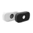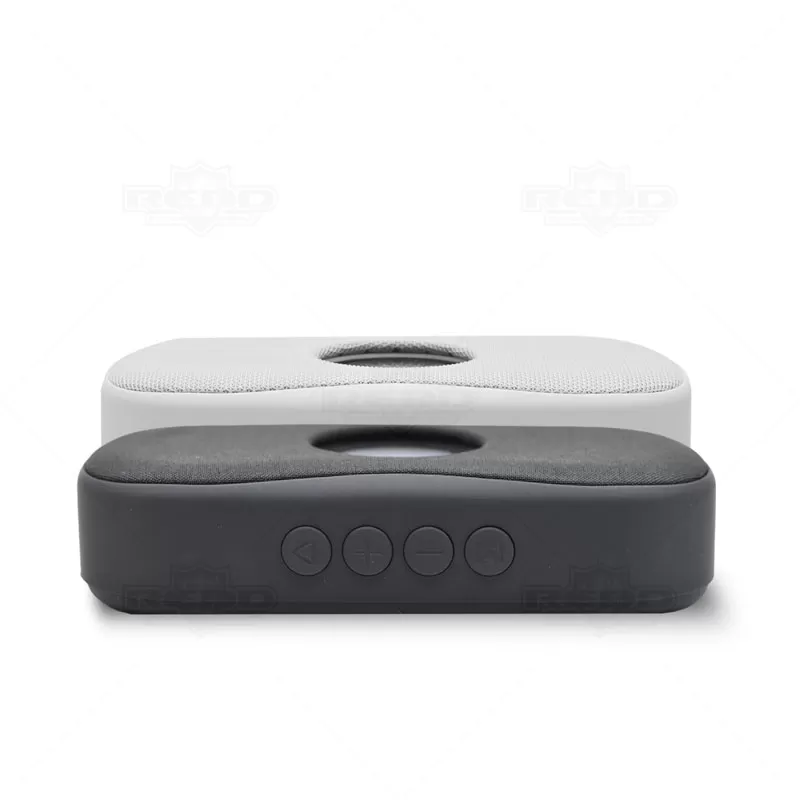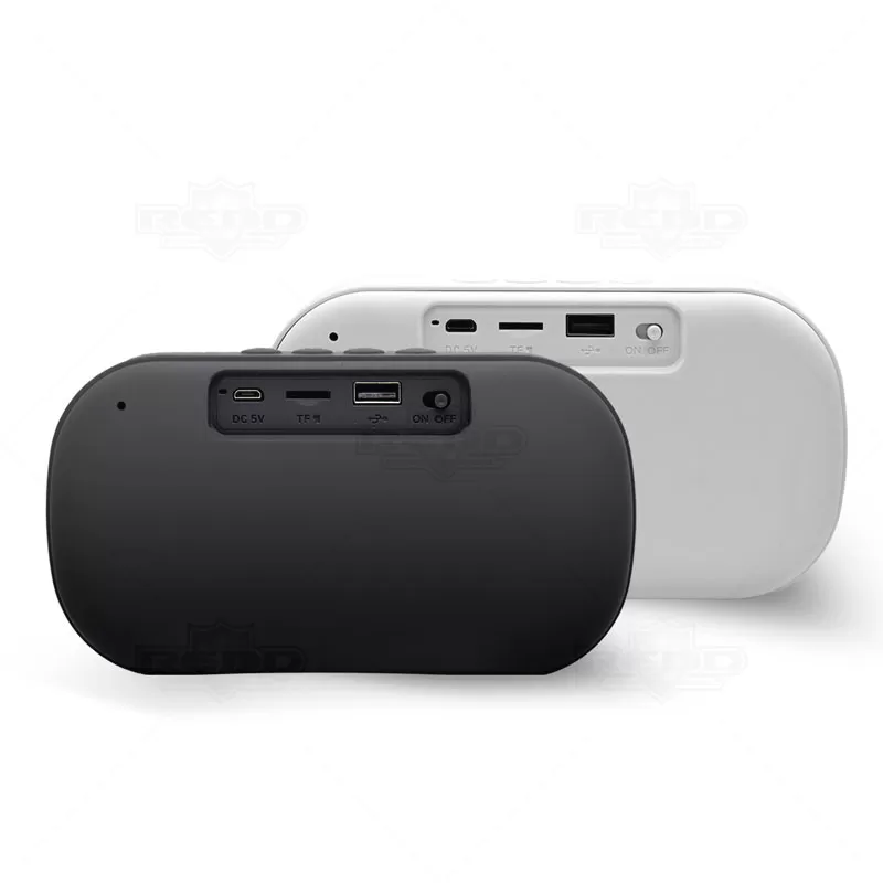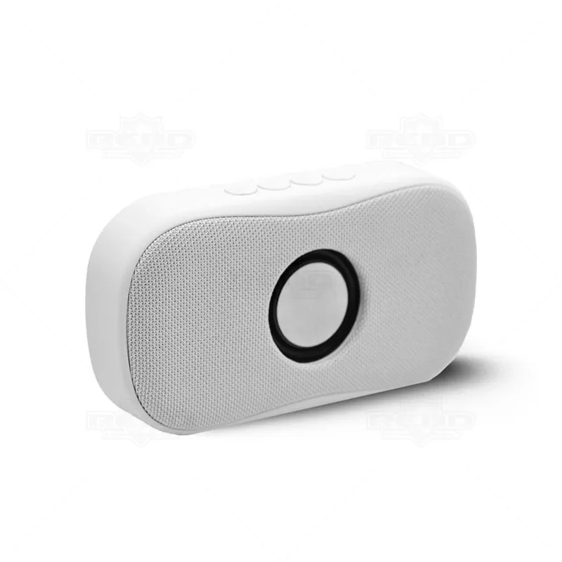 Caixa de som personalizada com acabamento emborrachado. Possui entrada para cartão de memória, entrada USB, auxiliar P2, bateria recarregável em torno de 3-4 horas de duração, potência 2 falantes de 3W, tempo de uso de 6 até 18 horas, distância de transmissão de aproximadamente 10 metros via Bluetooth, transmissão de música sem a necessidade de fios e controle de volume com conexão à playlist do dispositivo móvel. Obs: O produto possui o sistema de compartilhamento duplo (TWS) que possibilita o uso simultâneo de duas unidades do mesmo modelo, ampliando a potência do som, acompanha cabo USB para carregamento. Ideal para brindes promocionais e eventos corporativos.