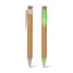 Caneta ecológica personalizada, produzida em bambu com detalhes em fibra de trigo, possui clip com design diferenciado em formato de folha e esferográfica na cor azul com acionamento por click. Produto Inovador com apelo sustentável. Ideal para divulgar sua empresa em eventos corporativos, brindes personalizados e campanhas promocionais.