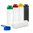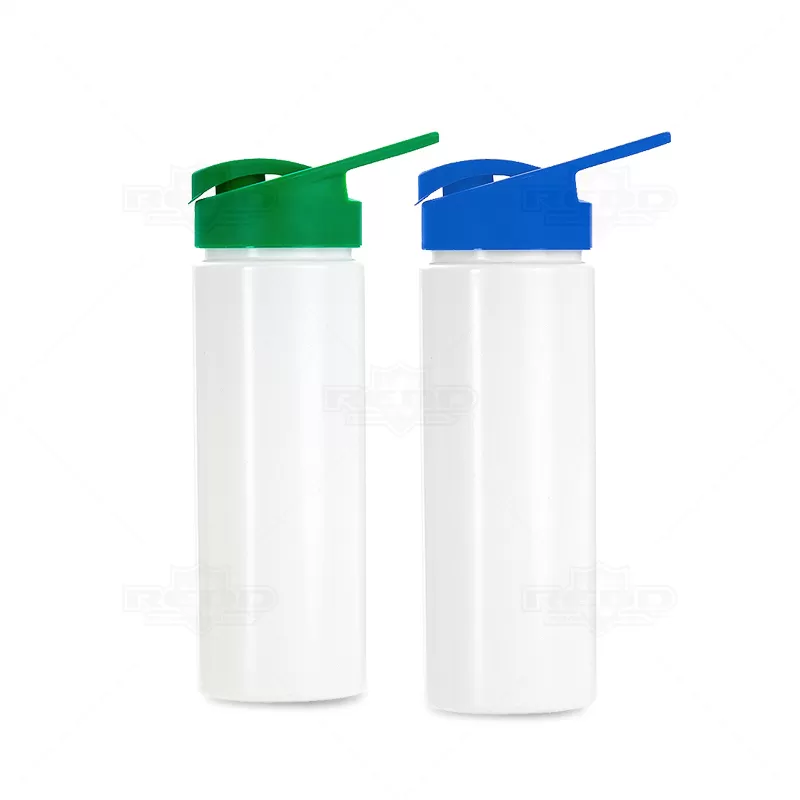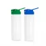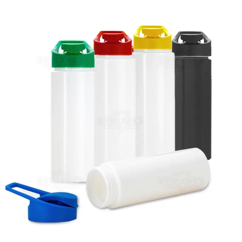 Squeeze plástico personalizado com capacidade para de 550ml, com tampa plástica rosqueável, alça acoplada e tampa protetora para o bocal. Ideal para brindes promocionais e eventos corporativos.