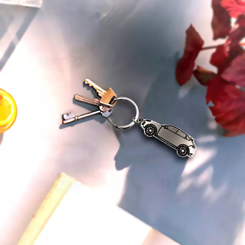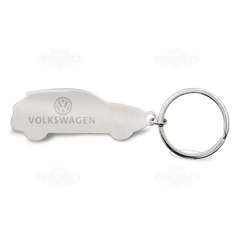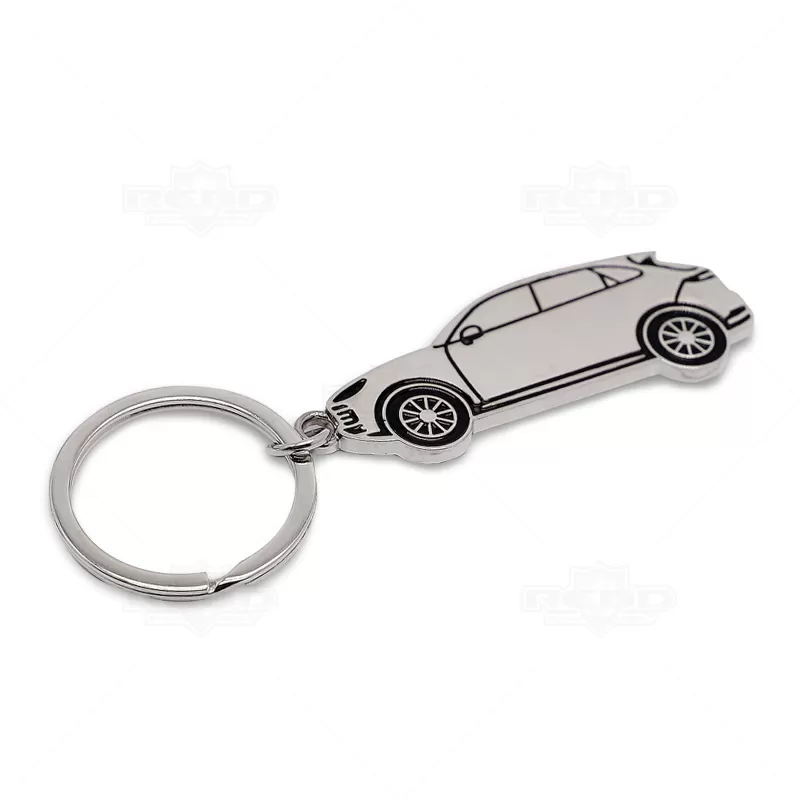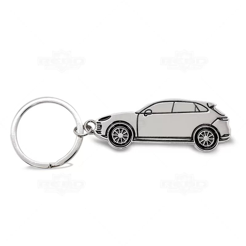 Chaveiro personalizado produzido em metal inoxidável com o formato de carro. Possui argola de metal e pintura na parte frontal. Ideal para brindes, companhas promocionais e eventos corporativos.