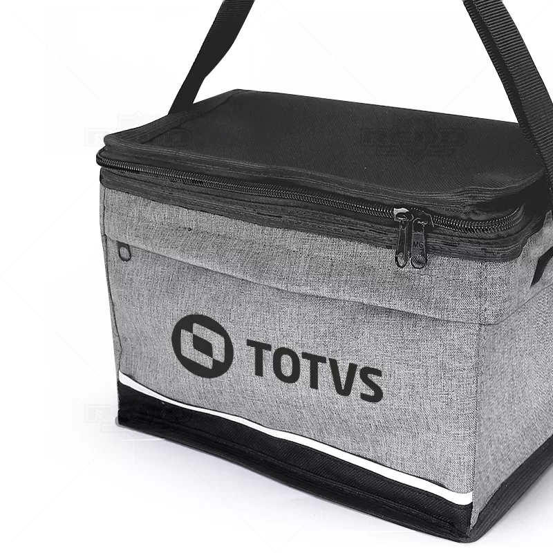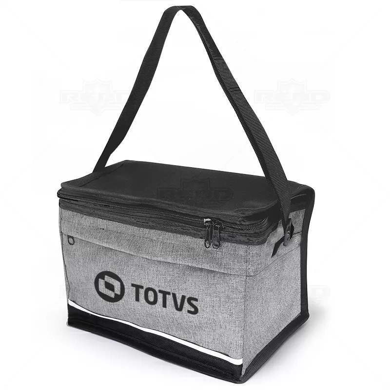 Bolsa térmica personalizada produzida em material sintético mesclado, possui compartimento interno com manta térmica ideal para manter / conservar a temperatura dos alimentos e bebidas por mais tempo, capacidade interna para 7,7 litros, alça regulável e bolso frontal e principal com fechamento por zíper. Ideal para brindes promocionais e eventos corporativos. *Não é adequado colocar gelo pois por mais que a bolsa conserve a temperatura o gelo irá derreter e vazar pela costura, caso o objetivo principal seja a utilização de gelo, opte por nossas opções de coolers.