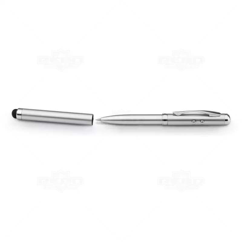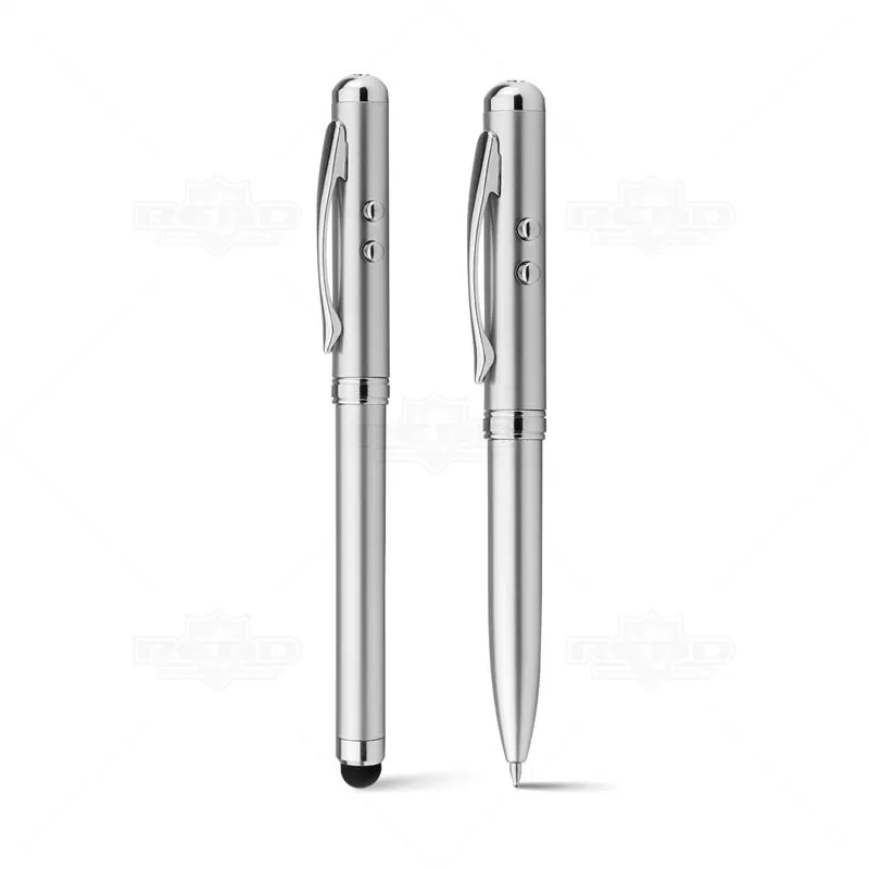 Caneta de metal personalizada, esferográfica na cor azul, com ponteira laser e luz de Led. Acompanha estojo de metal com E.V.A. interno e 3 pilhas inclusas LR41 . Ideal para brindes corporativos e eventos promocionais.
