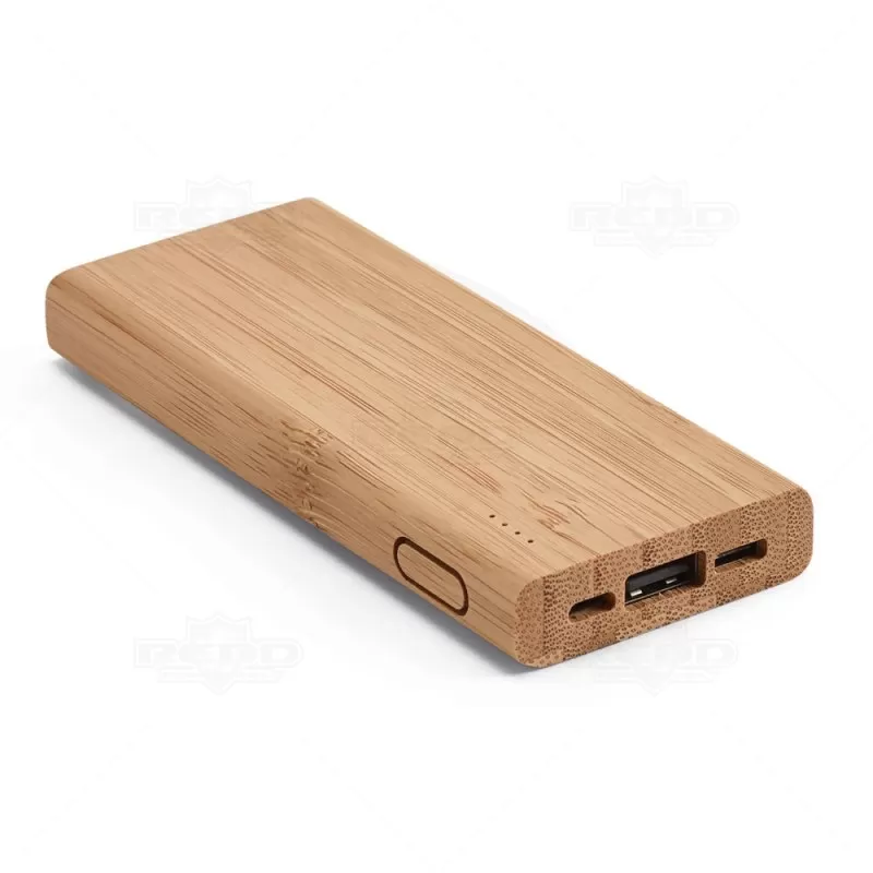 Carregador personalizado produzido em bambu, possui um design inovador com capacidade de 5.000mAH, entrada 5V/2A e saída 5V/1-2A. Indicador de carga, 1 porta micro USB, 1 porta USB tipo C e 1 porta USB. Inclui cabo USB/micro USB para carregamento. Compatível com smartphones, iPhone, consoles de jogos portáteis, câmeras digitais e outros dispositivos portáteis. Ideal para brindes promocionais e eventos corporativos. Objetos decorativos não acompanha o produto.