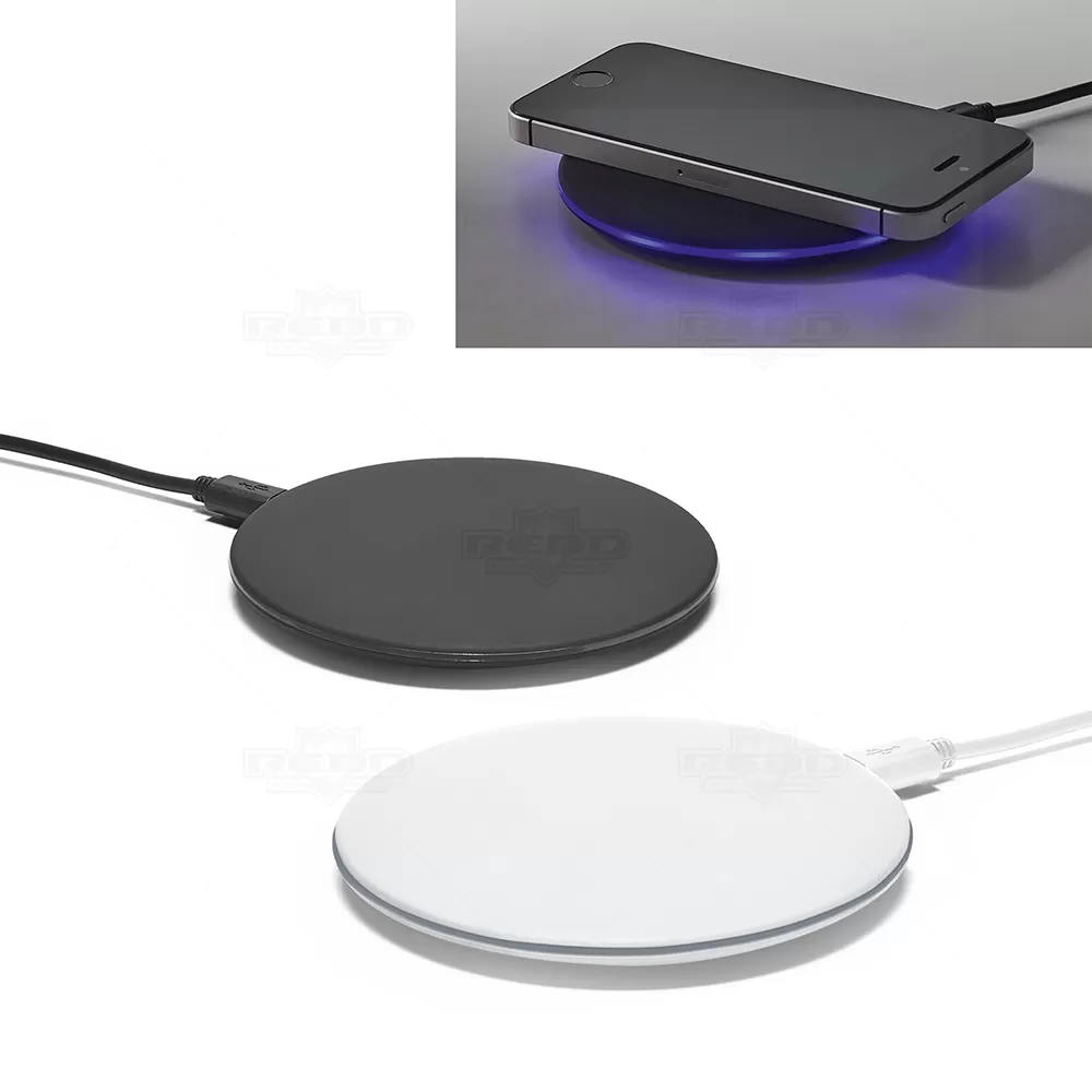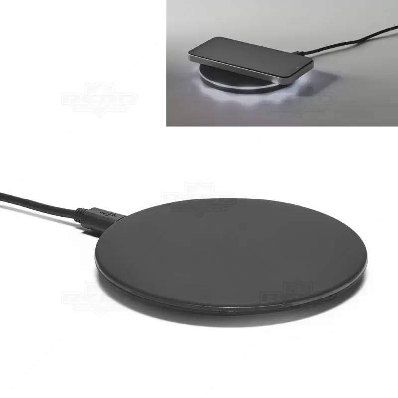 Carregador personalizado wireless produzido em ABS em um design inovador. Possui painel frontal com acabamento emborrachado que ao aplicar a gravação se ilumina com a luz de LED quando estiver em atividade. Carregamento compatível com smartphones que tenham a tecnologia de carregamento sem fio por indução. Possui entradas 5V/2A e 9V/1.67A, potência máxima de saída de 10W, e cabo USB/micro USB de 1 metro para carregamento. Obs: Para o funcionamento do carregador, é necessário estar conectado em uma fonte de energia via USB. Ideal para brindes promocionais e eventos corporativos. Smartphone não acompanha o produto.