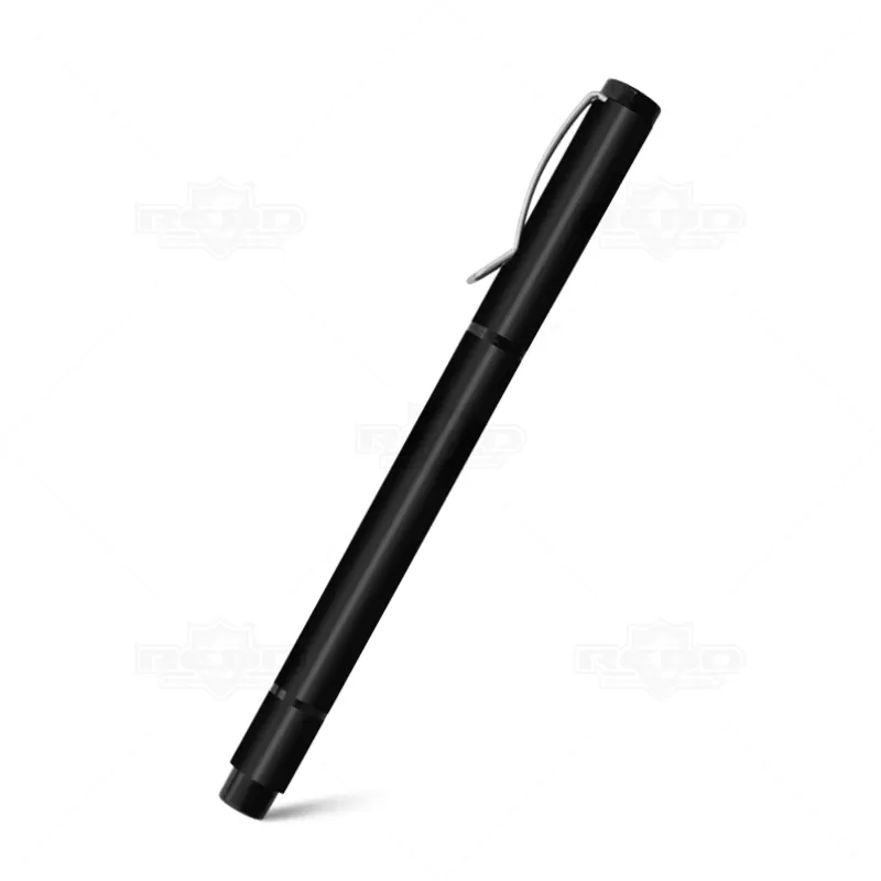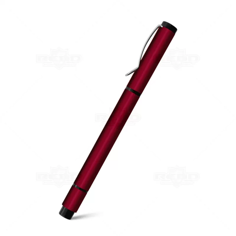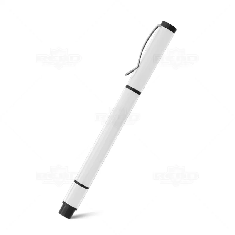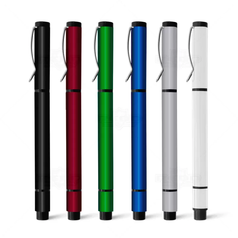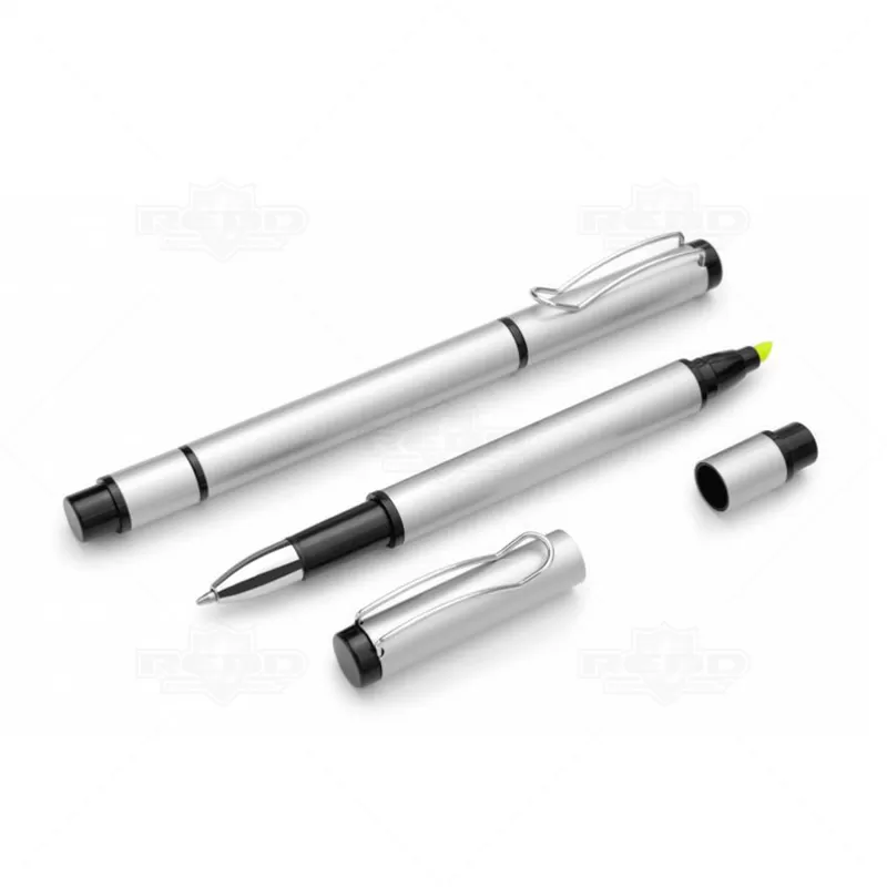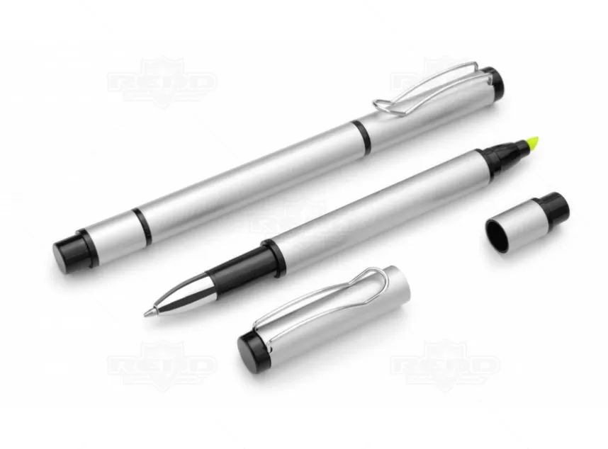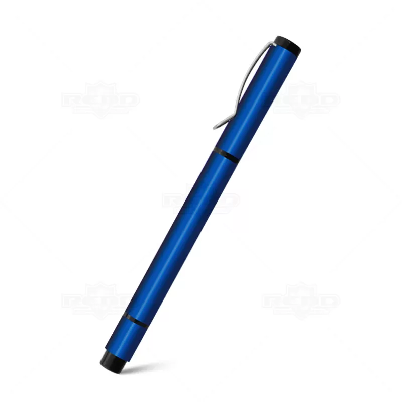 Caneta de metal personalizada com esferográfica na cor azul, clip de metal e marca texto na parte superior da caneta com tampa destacável. Ideal para divulgar sua empresa em eventos corporativos, brindes personalizados e campanhas promocionais.