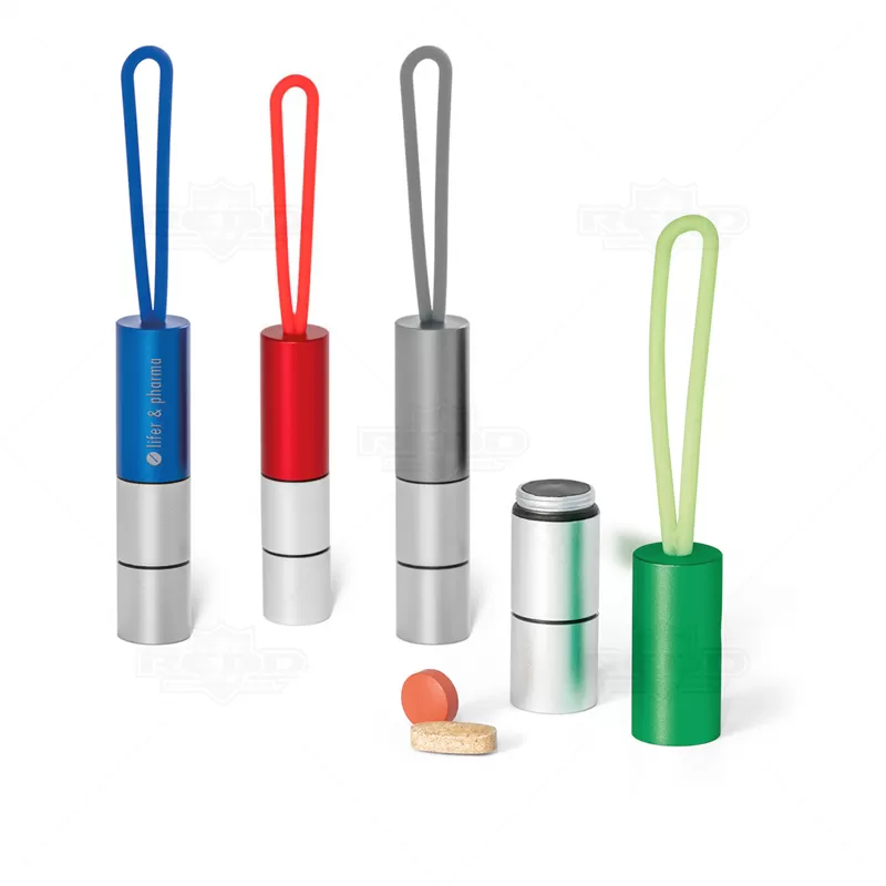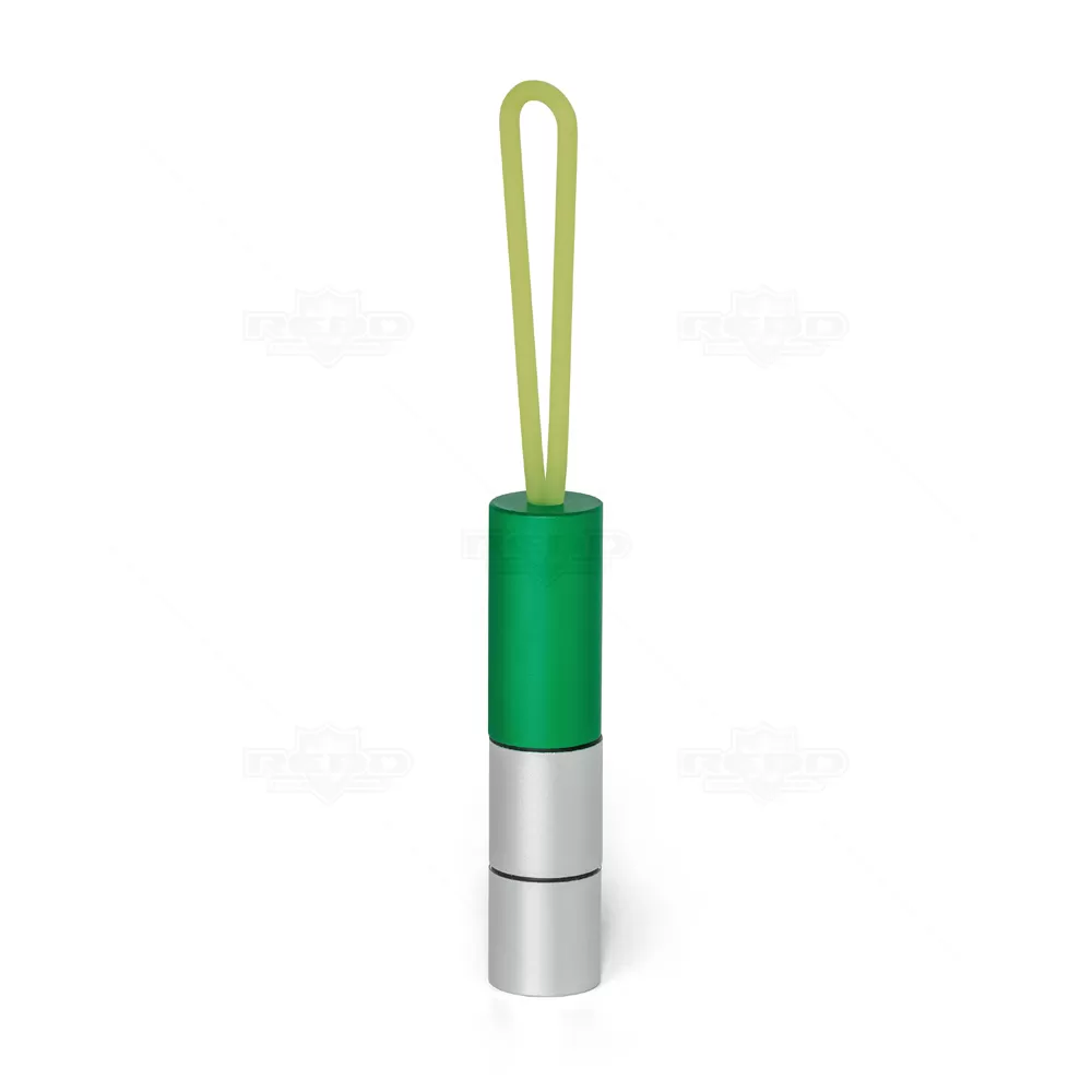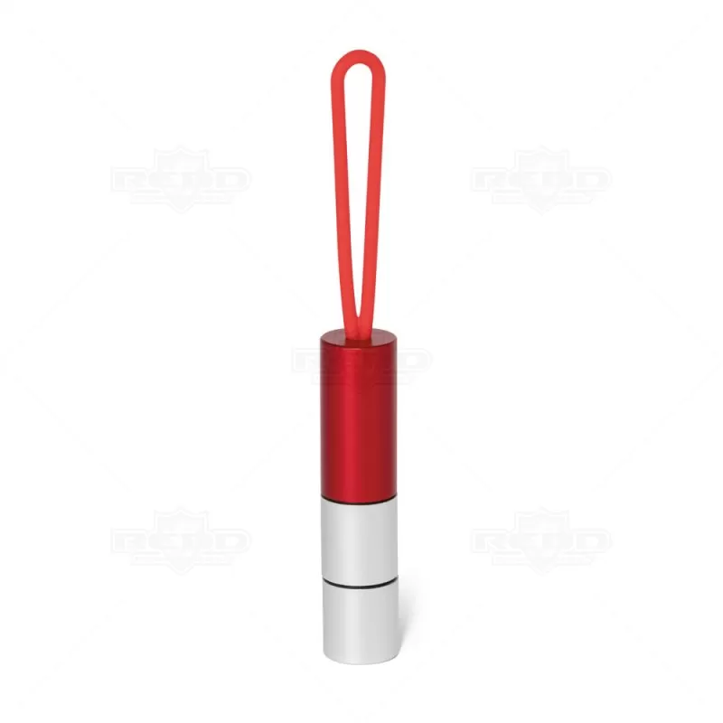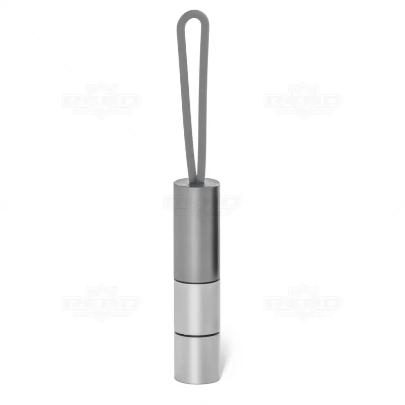 Lanterna de metal personalizada com argola de mão em silicone, compartimento para porta comprimidos e 1 led diferenciado. Ideal para brindes promocionais e eventos corporativos. Acompanha 3 pilhas LR14.