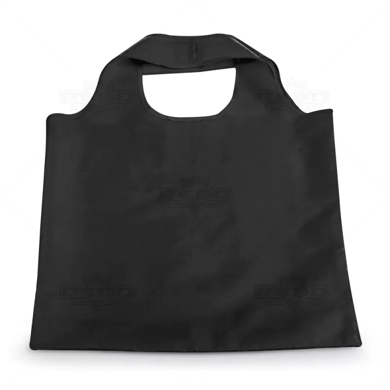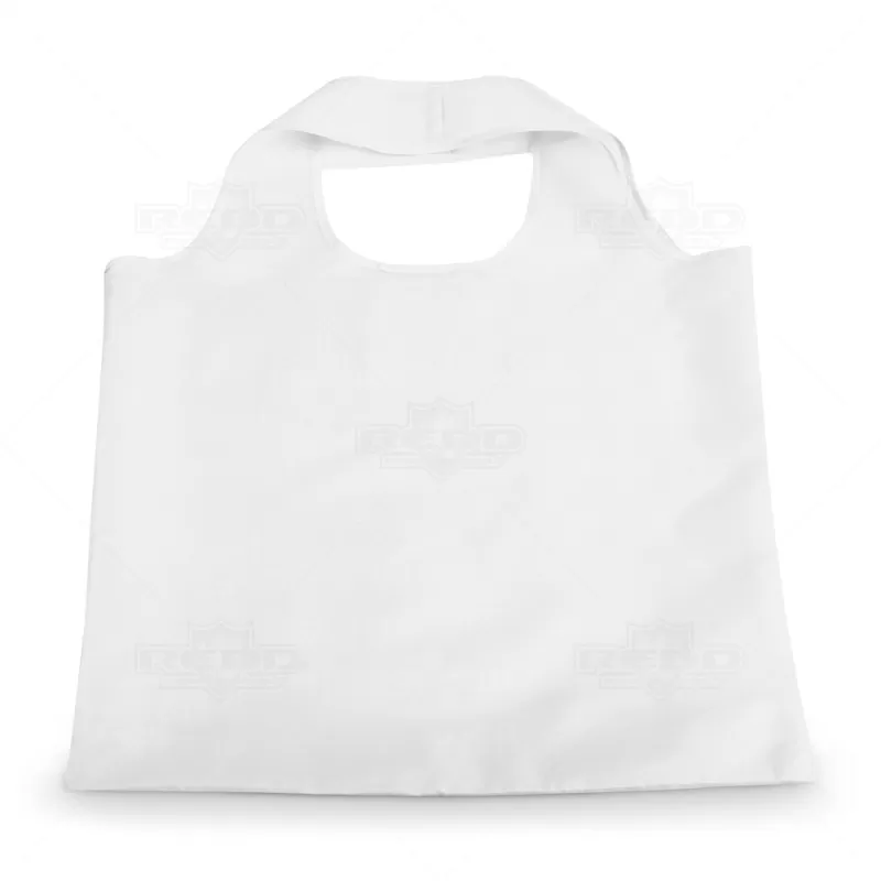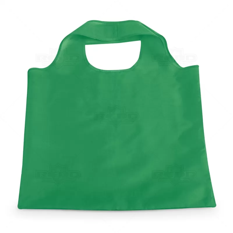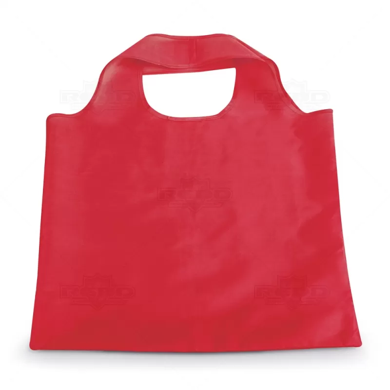 Sacola dobrável em poliéster 190T personalizada com alça de mão inteiriça e compartimento principal com amplo espaço. Ideal para brindes promocionais e eventos corporativos. Objetos decorativos não acompanham o produto.