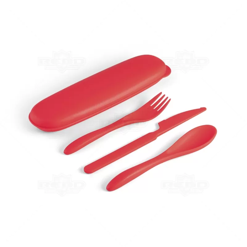 Conjunto de talheres ecológico com estojo personalizado. Possui 3 talheres sendo eles: 1 garfo, 1 faca e 1 colher, todos produzidos em fibra de bambu e PP. Produto inovador visando campanhas que defendem um mundo mais sustentável. Ideal para brindes promocionais e eventos corporativos.