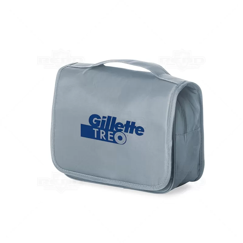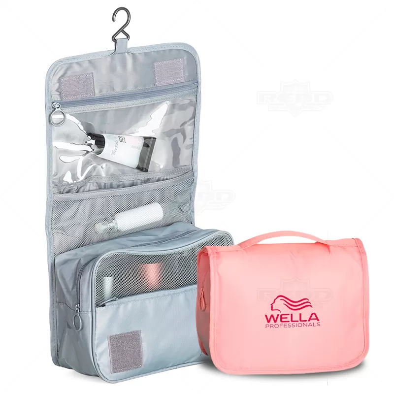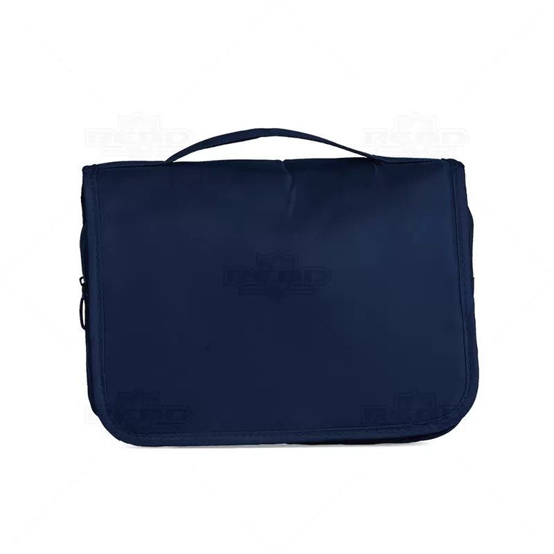 Necessaire cabideira personalizada produzida em tecido sarja, Possui abertura frontal por velcro, alça superior, parte interna com gancho plástico; bolso interno superior de pvc e bolso de tela superior ambos de zíper. Há também dois bolsos inferiores de zíper, sendo o primeiro com detalhe sem tela e 3 divisões internas com 3 elásticos para fixação e segundo bolso na parte frontal interna. Parte traseira possui um bolso externo. Perfeita para lhe acompanhar em viagens e até mesmo transportar seus itens pessoais do dia a dia com organização e praticidade. Ideal para brindes promocionais e eventos corporativos. Objetos decorativos não acompanham o produto.