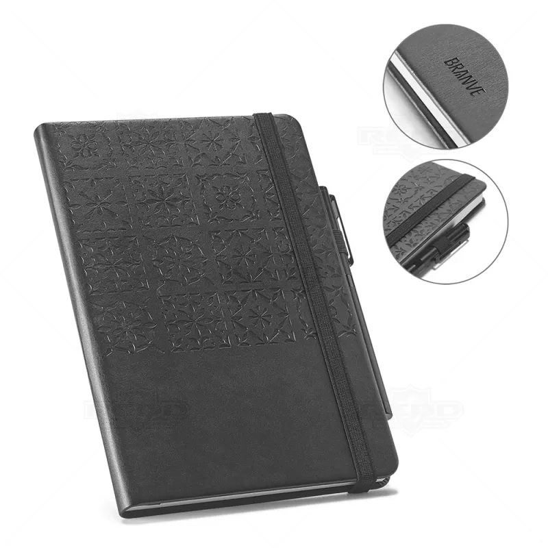 Bloco de anotações personalizado formato A5 com capa rígida em imitação de pele com 128 folhas pautadas no seu interior. Todo este bloco foi idealizado com base em elementos culturais, neste caso concreto os azulejos portugueses. A banda elástica que permite fechar o caderno, o marcador de livros e o suporte de esferográfica (não inclusa), reforçam a utilidade deste caderno. Mais do que um caderno, é um suporte para comunicação de emoções. Algo muito pessoal e único. Fornecido em caixa presente. 140 x 210 mm | Caixa: 177 x 250 x 24 mm