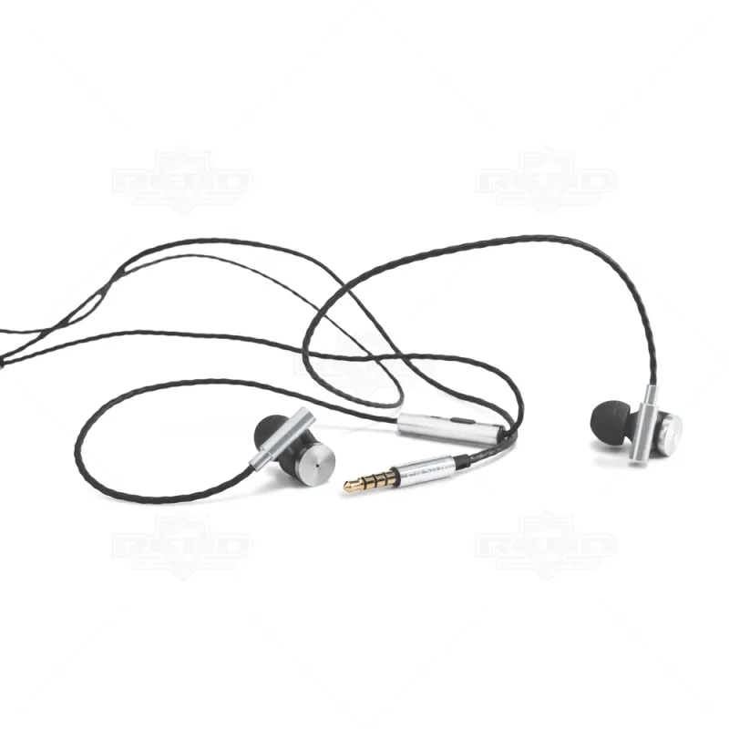 Fone de Ouvido personalizado com fios. Produzido em metal e ABS de design moderno que se destacam pelo seu acabamento metalizado nos vários detalhes do produto. Tem uma frequência de 20Hz-20kHz (16?), microfone e botão para atender chamadas. Inclui cabo de 1,3 m (Jack 3,5 mm). Fornecidos em caixa presente. 25 x 19 mm | Caixa: 88 x 97 x 4 mm
