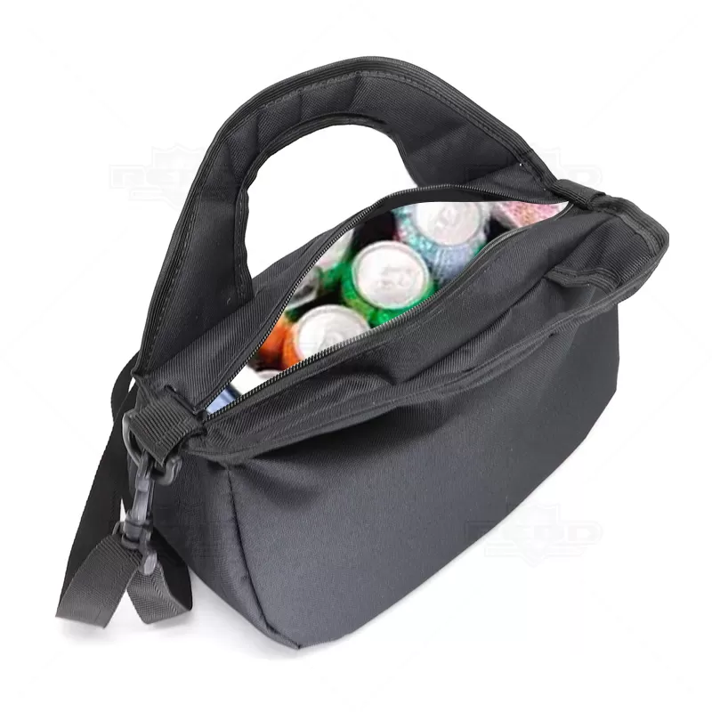Bolsa térmica personalizada produzida em poliéster. Possui compartimento interno com manta térmica ideal para manter / conservar a temperatura dos alimentos e bebidas por mais tempo, capacidade interna para 5 litros, alça de mão, alça de ombro regulável e bolso principal com fechamento por zíper. Ideal para brindes promocionais e eventos corporativos. Imagem ilustrativa. *Não é adequado colocar gelo pois por mais que a bolsa conserve a temperatura o gelo irá derreter e vazar pela costura, caso o objetivo principal seja a utilização de gelo, opte por nossas opções de coolers.