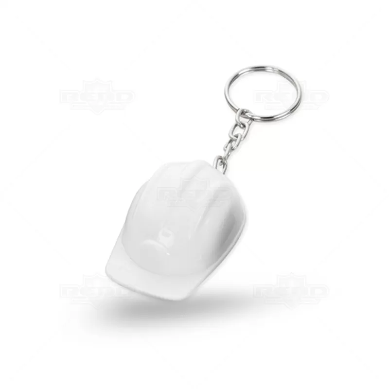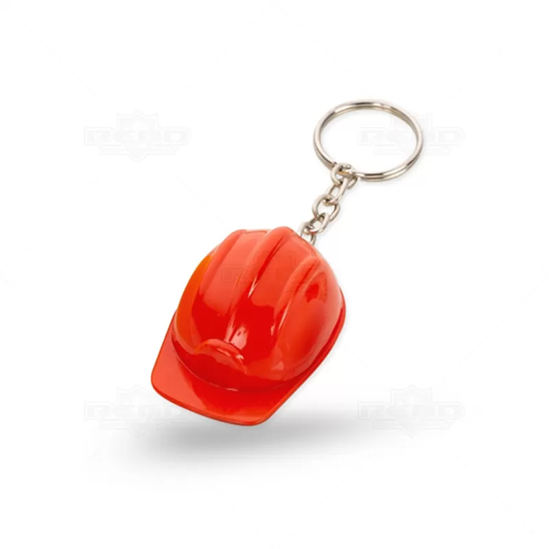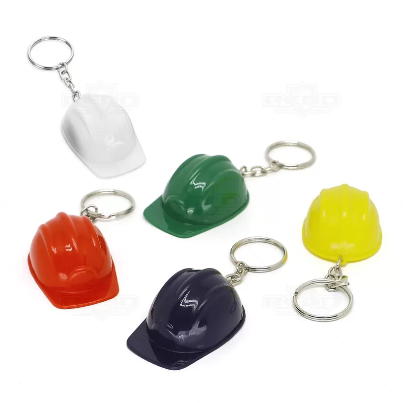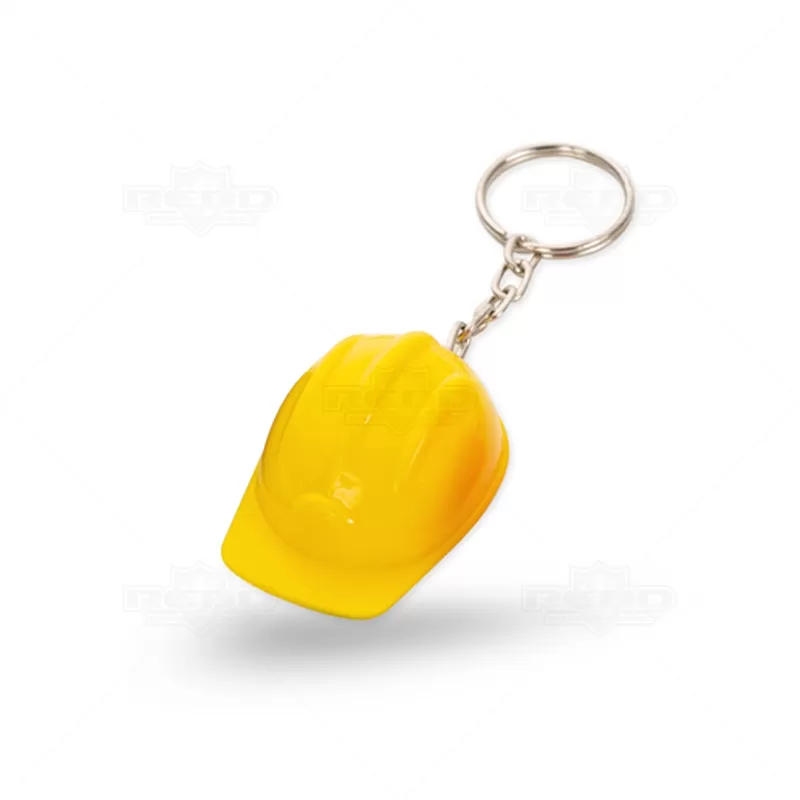 Chaveiro formato capacete de segurança EPI, construção, engenheiro, engenharia civil entre outros eventos. Produzido em material plástico com argola de metal. Ideal para brindes promocionais e eventos corporativos.