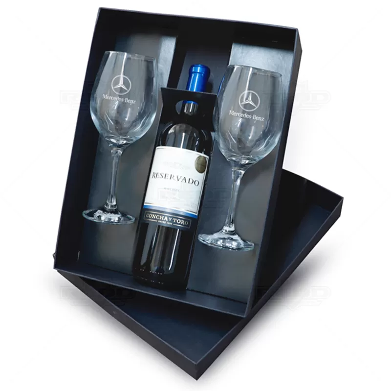 Kit Vinho personalizado com 1 Garrafa de vinho RESERVADO MALBEC de 750ml, 2 taças de Vidro de 490ml com bojo grande, haste longa, boca fechada para melhor concentração do aroma e embalagem confeccionada em caixa cartonada com papel Paraná, revestida em Off-Set preto 120g/m². Visual elegante e contemporâneo, É o presente ideal para presentear colaboradores, fornecedores e clientes em momentos memoráveis.