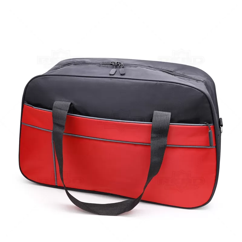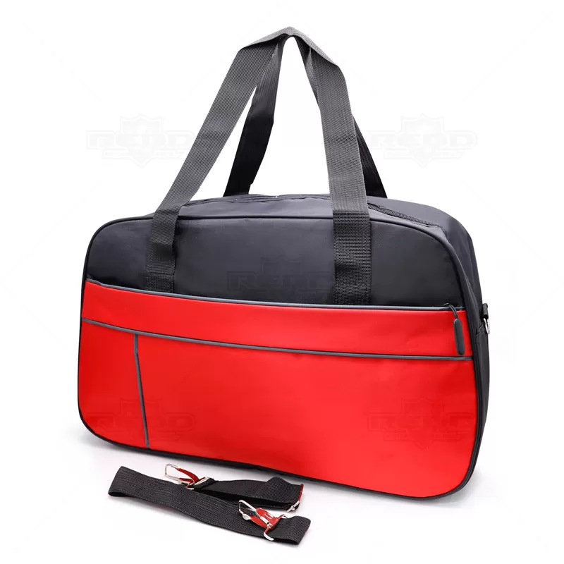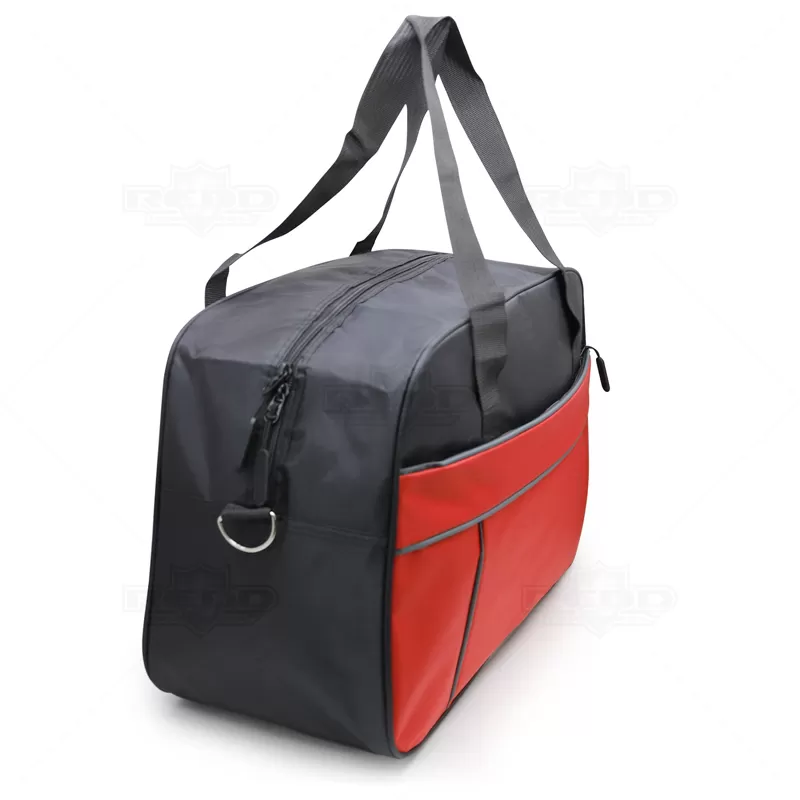Bolsa mala de viagem esportiva personalizada produzida em nylon, possui bolso principal com fechamento por zíper, alça de mão, alça de ombro removível com engate rápido de metal, acabamento frontal em vivo reforçado, zíperes com puxadores emborrachados, pequeno bolso interno para documentos/chaves, amplo espaço interno e bolso frontal com fechamento por zíper. Ideal para brindes promocionais e eventos corporativos.