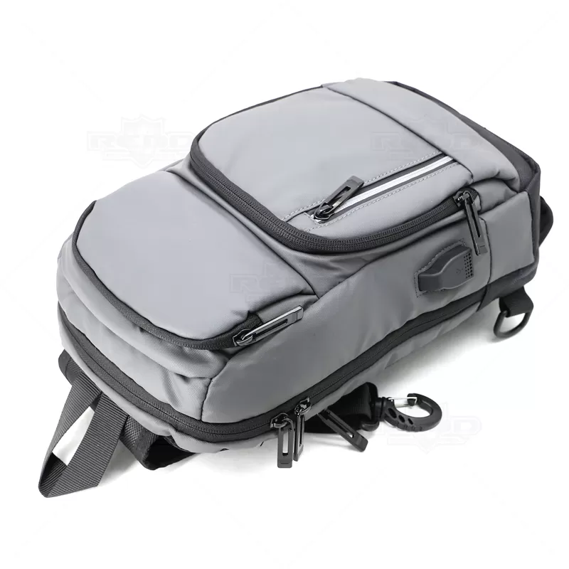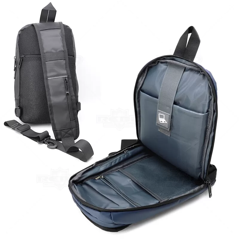 Mini mochila personalizada produzida em tecido à prova de água. Possui alça de ombro ajustável com engate rápido e zíper, engates traseiros laterais / destro - canhoto, zíper traseiro, costas almofadadas, 3 bolso frontais com compartimento para 2 canetas e 1 bolso para objetos pessoais, 4 compartimentos internos 1 para objetos pessoais, 1 compartimentos para tablet / iPad, 1 bolso interno com fechamento por zíper, 1 bolso com telinha em nylon, 1 adaptador lateral com saída USB externo com cabo acoplado permitindo a conexão de um carregador portátil (Power Bank não acompanha o produto.) de dentro da mochila para transferência da carga ao lado externo, zíperes de metal e tecido à prova de àgua. Ideal para brindes promocionais e eventos corporativos. Obs: Para a entrada lateral USB funcionar como carregador, é necessário a aquisição de um de nossos Power Banks.