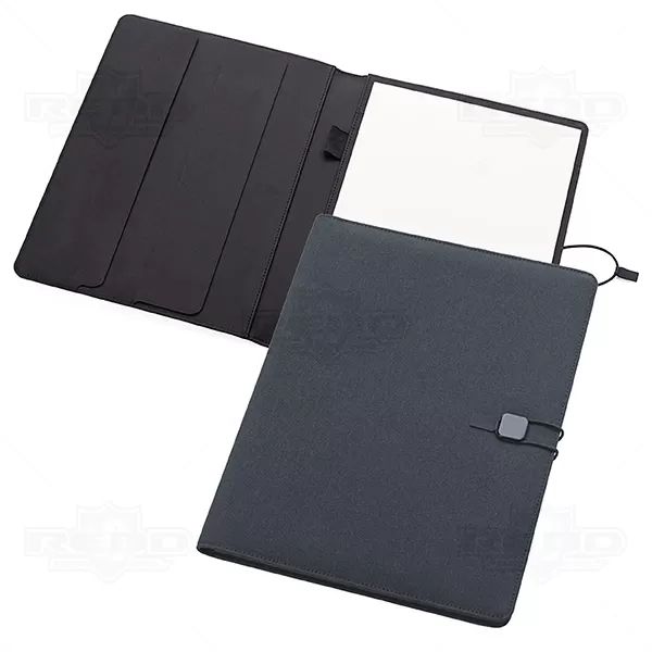 Pasta executiva personalizada, com capa almofadada em tecido poliéster, possui bloco de anotações com 20 folhas pautadas, porta caneta (não inclusa), porta documentos e porta cartão. Excelente acessório para palestras, convenções eventos corporativos e brindes promocionais.