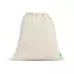 Mochila saco ecológica personalizada produzida em 100% algodão orgânico (120 g/m²) proveniente de um cultivo sustentável sem químicos ou pesticidas. Possui amplo espaço, alças de 60 cm e etiqueta Label Organic lateral. Ideal para brindes promocionais e eventos corporativos. Imagem ilustrativa.