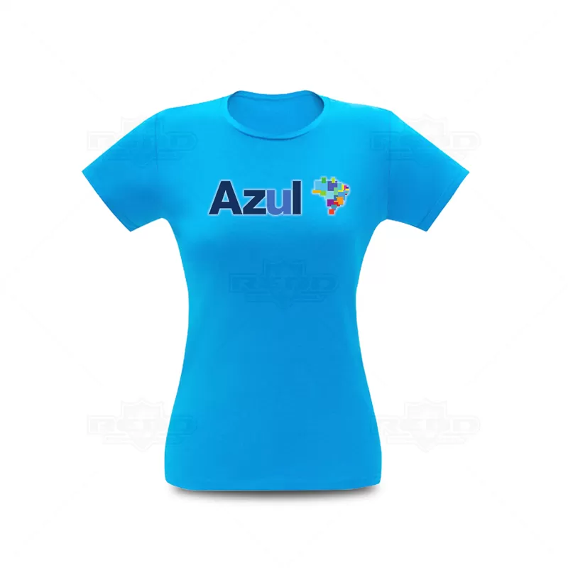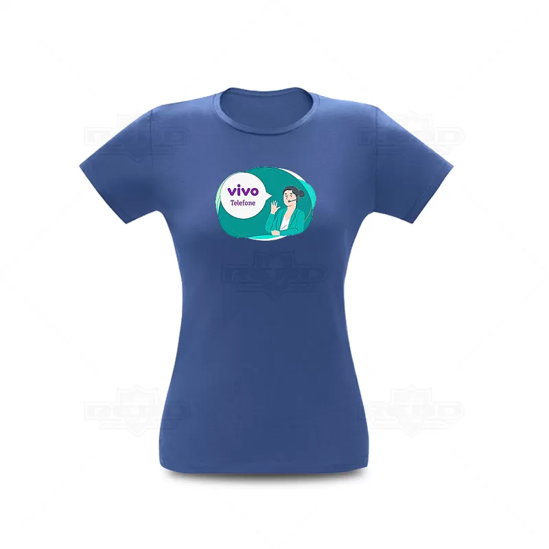 Camiseta feminina personalizada produzida em malha jersey 100% algodão (150 g/m²). Peça cortada e cosida com costura dupla nas mangas e parte inferior. Tamanhos: P (A60 x B41cm), M (A62 x B44cm), G (64 x 47cm), GG (A66 x B50cm). Personalização em transfer. Obs: Nos artigos de têxtil podem existir desvios de 5% em relação às medidas indicadas.