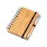 Bloco de anotações personalizado produzido em bambu com capa dura. Possui elástico para fechamento, encadernação wire-o, caneta esferográfica com acabamento em bambu e acionamento por click, aproximadamente 60 folhas pautadas de papel reciclado. Ideal para divulgar sua empresa em eventos corporativos, brindes personalizados e campanhas promocionais.