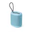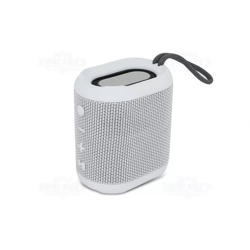 Caixa de som personalizada, produzida em material plástico de alta resistência. Possui alto falantes com acabamento em tecido, cordão de nylon acoplado para facilitar o transporte. A caixinha funciona nos modos Bluetooth, Rádio FM, Cartão TF (Micro SD), auxiliar e USB. Possui bateria de longa duração, com autonomia de aproximadamente 19 horas contínuas de reprodução. É possível emparelhar 2 caixinhas do mesmo modelo e executar o som sincronizado em ambas. Acompanha cabo USB e cabo auxiliar P2. Ideal para brindes promocionais e eventos corporativos.