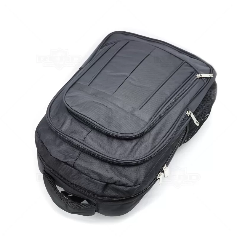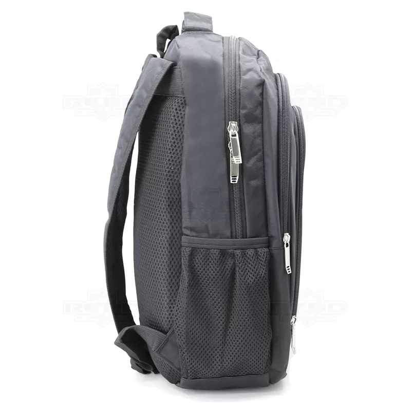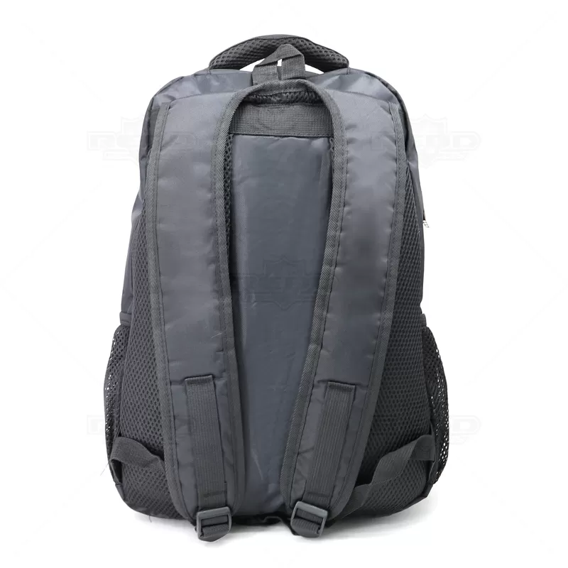 Mochila para notebook personalizada produzida em em poliéster com compartimento para notebook. Contém compartimento grande com bolso para notebook até 15,6 polegadas, compartimento mediano com zíper, bolso frontal com zíper, alça de mão, alça superior em nylon, alças de ombro e costas acolchoada com revestimento antitranspirante e bolsos laterais telados. Ideal para brindes promocionais e eventos corporativos.