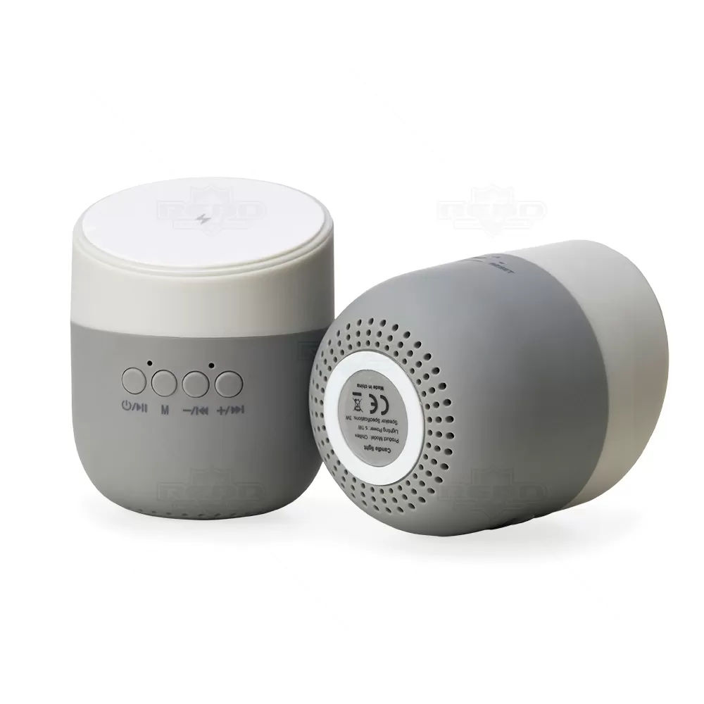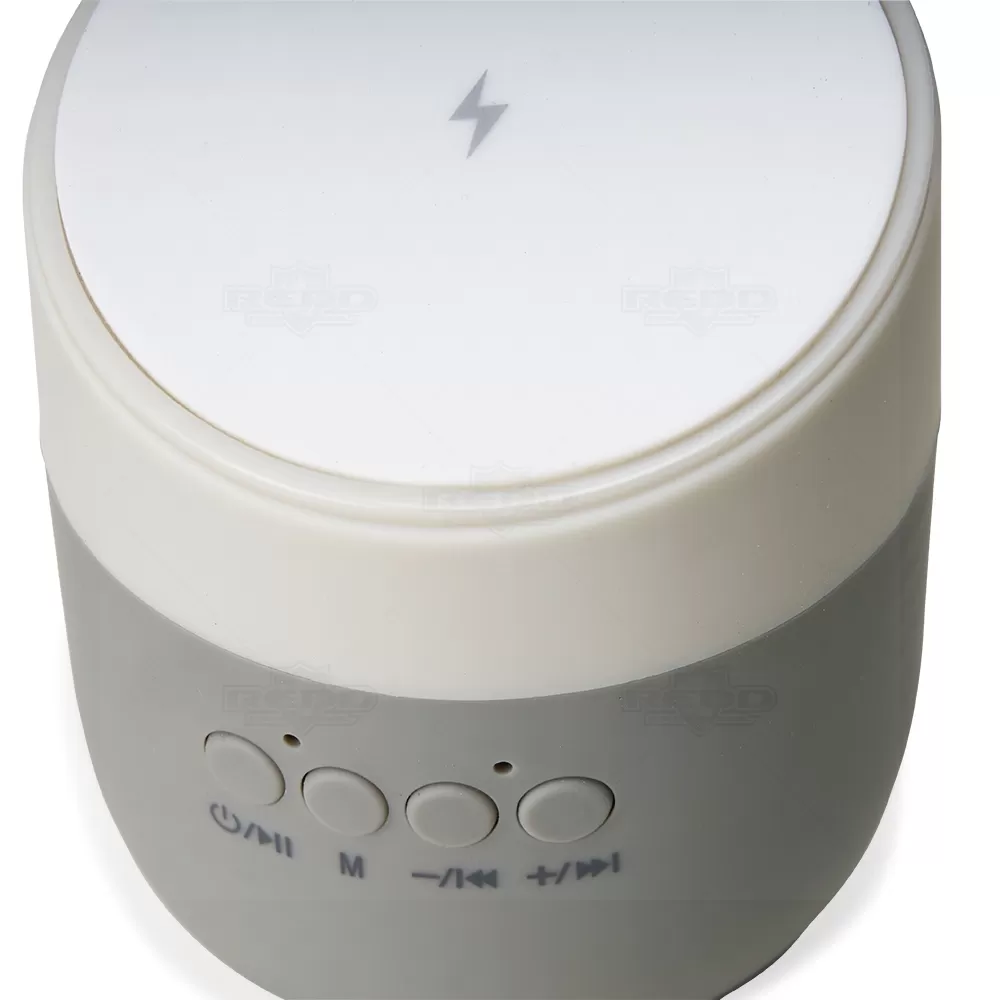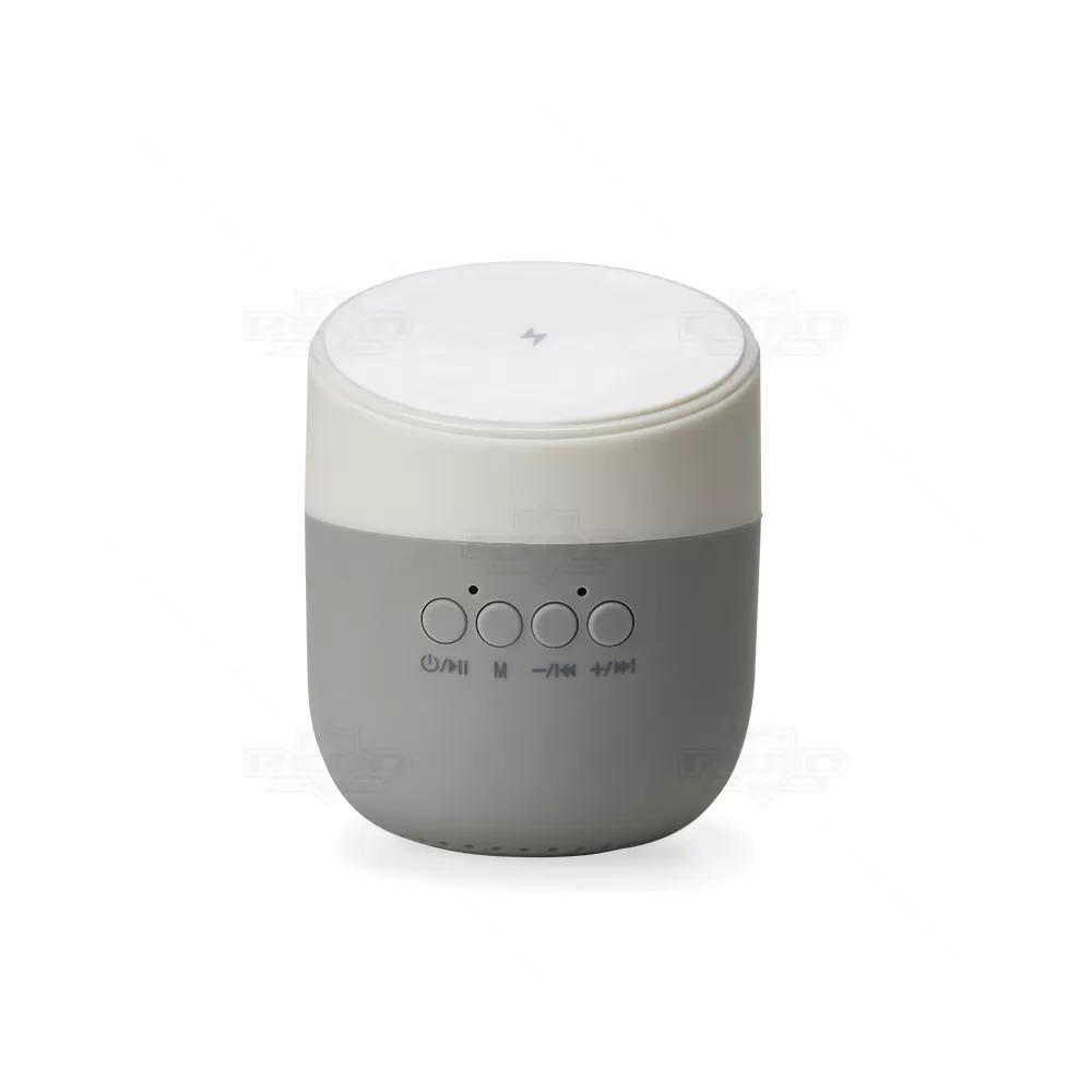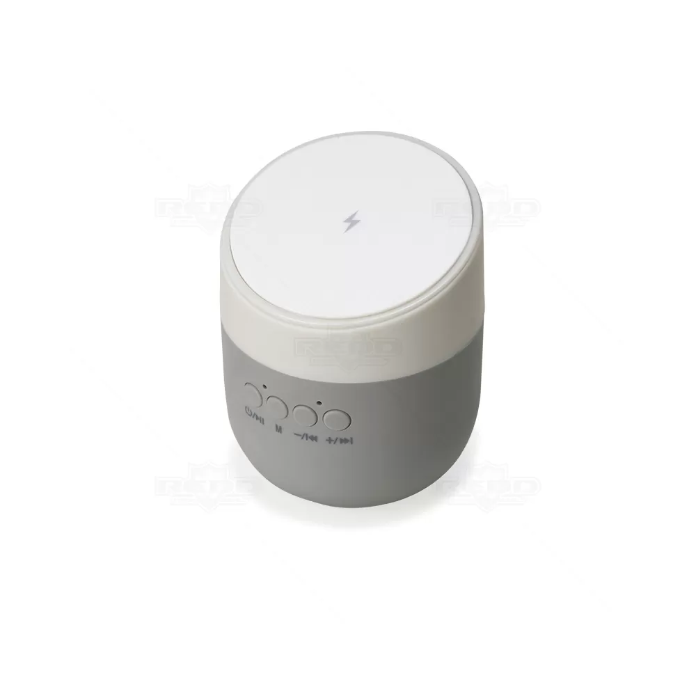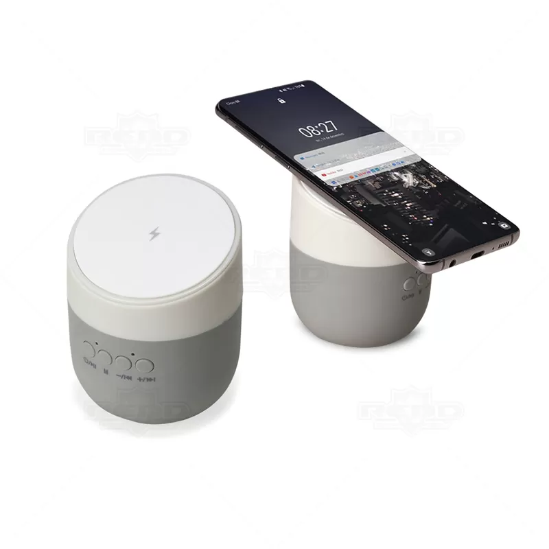 Caixa de som personalizada, com carregador wireless (por indução), produzida em material plástico resistente, a caixinha possui antiderrapantes emborrachados na parte inferior e na área de indução. Para desfrutar do carregamento é fundamental que o celular possua a tecnologia QI – desta maneira é possível carregar o celular apenas posicionando-o sobre o carregador, sendo necessário apenas conectar o carregador à uma fonte de energia (USB ou diretamente na tomada). A caixinha executa nos modos bluetooth e cartão TF (microSD) e acompanha cabo USB. Ideal para brindes promocionais e eventos corporativos. Imagem ilustrativa, itens decorativos não acompanham o produto.
