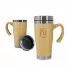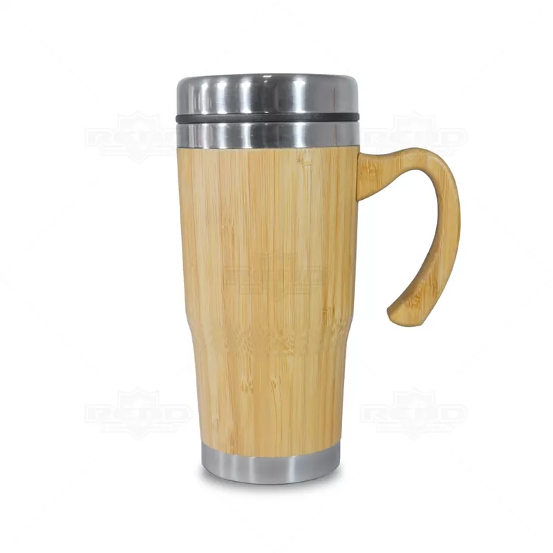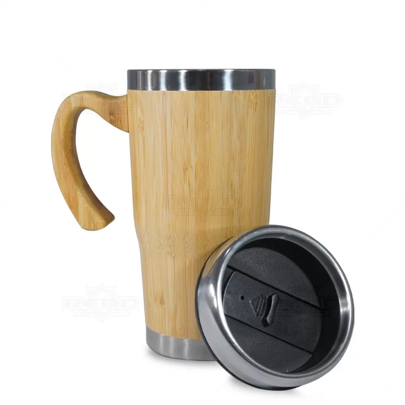 Caneca personalizada com capacidade para 500ml, possui corpo revestido em bambu, alça de bambu e parte interna em inox. Possui tampa rosqueável com abertura retrátil facilitando o consumo da sua bebida preferida. Ideal para brindes promocionais e eventos corporativos.