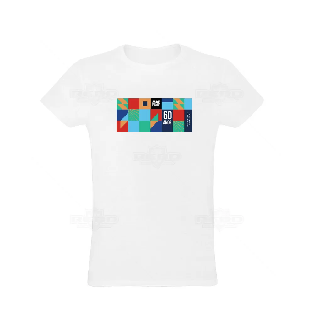 Camiseta unissex de corte regular em malha 100% algodão (165 g/m2) com fio 30/1 misto. Com gola em ribana 1,5x1,5 com fita de reforço e com costura dupla nas mangas, barra de fundo e laterais. Personalização em transfer 280 X 200 mm. Tamanhos: P (A69 x B50cm), M (A72 x B53cm), G (74 x 56cm), GG (A76 x B59cm), XGG (78.0 x 63.0). Obs: Nos artigos de têxtil podem existir desvios de 5% em relação às medidas indicadas.