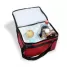 Bolsa térmica personalizada com capacidade para 13 litros. Produzida em tecido sintético, contém revestimento interno em polietileno atóxico, zíper principal de fechamento e alça para mãos em polipropileno. Ideal para conservar a temperatura dos alimentos. Imagem ilustrativa, itens decorativos não acompanham o produto. *Não é adequado colocar gelo pois por mais que a bolsa conserve a temperatura o gelo irá derreter e vazar pela costura, caso o objetivo principal seja a utilização de gelo, opte por nossas opções de coolers.
