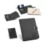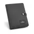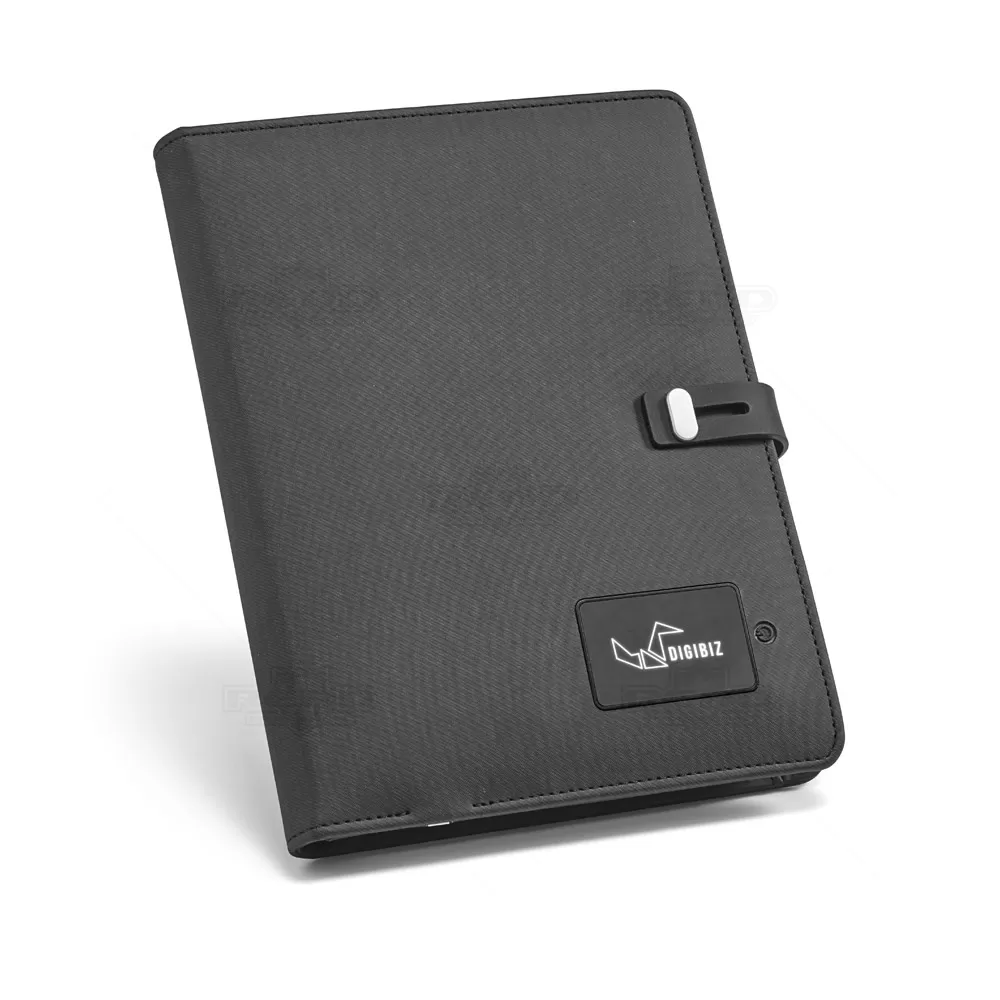 Pasta executiva personalizada, produzida em material sintético, com bateria portátil embutida (lítio). A bateria tem capacidade para 4.000 mAh, cabo USB/micro USB para carregamento. Na parte interna conta com um caderno removível com 64 folhas pautadas de cor marfim, um suporte para esferográfica (não inclusa) e elásticos para organização e suporte para smartphone, LED interior e botão on/off. Ideal para eventos corporativos e brindes promocionais. Objetos e acessórios não inclusos ao produto.