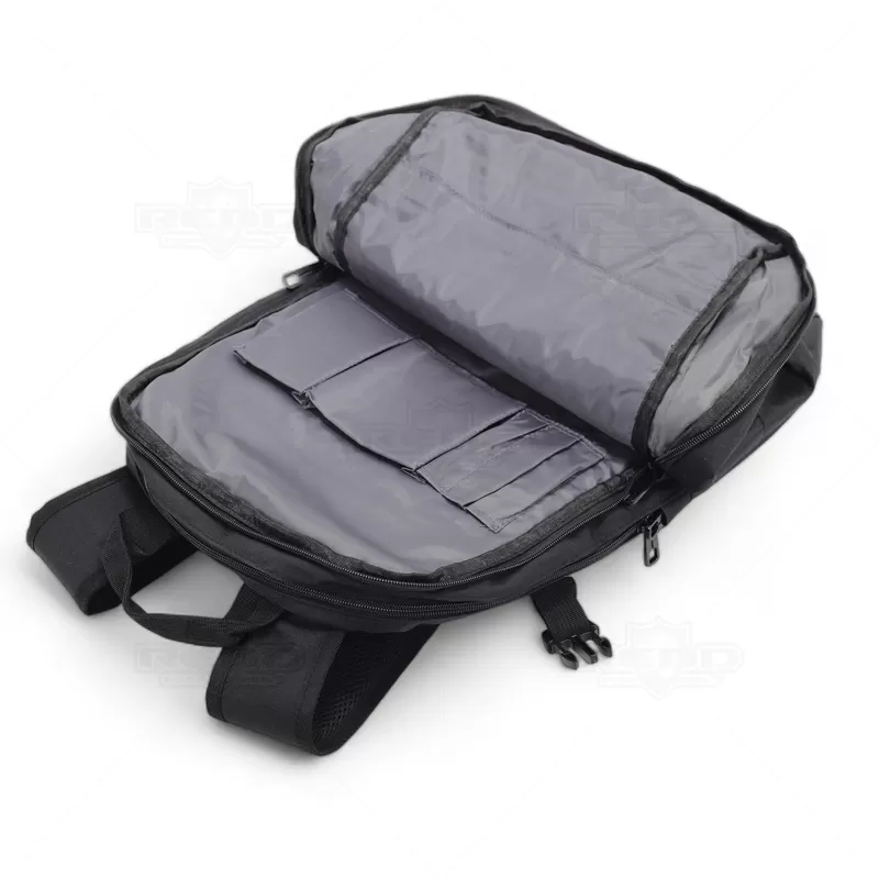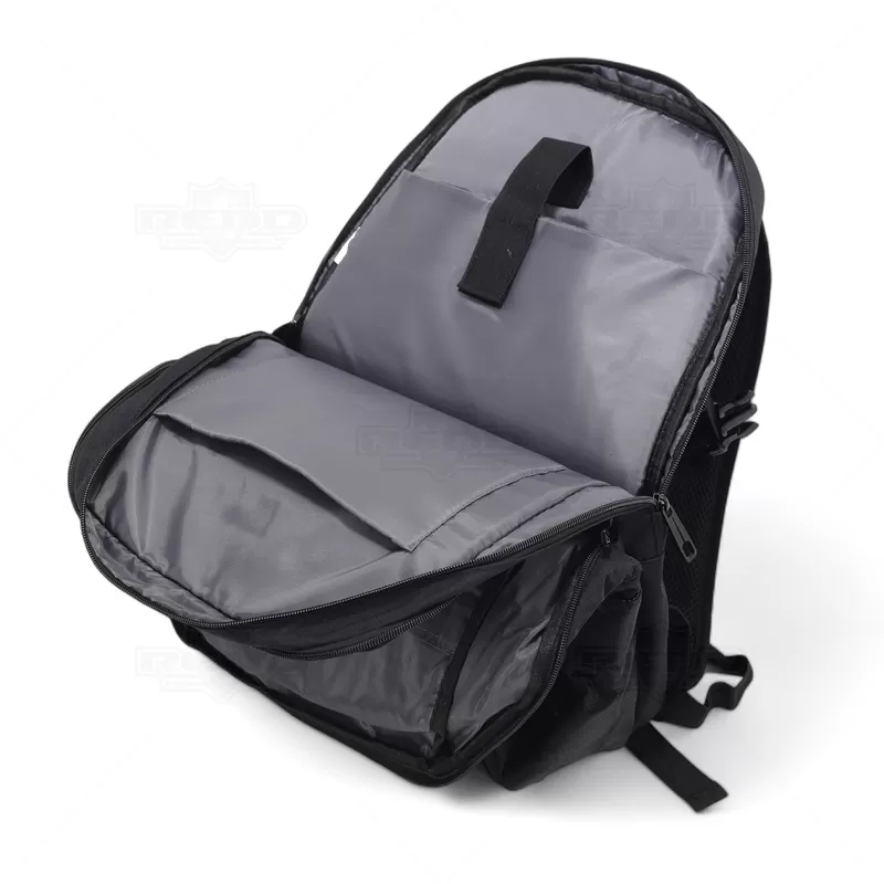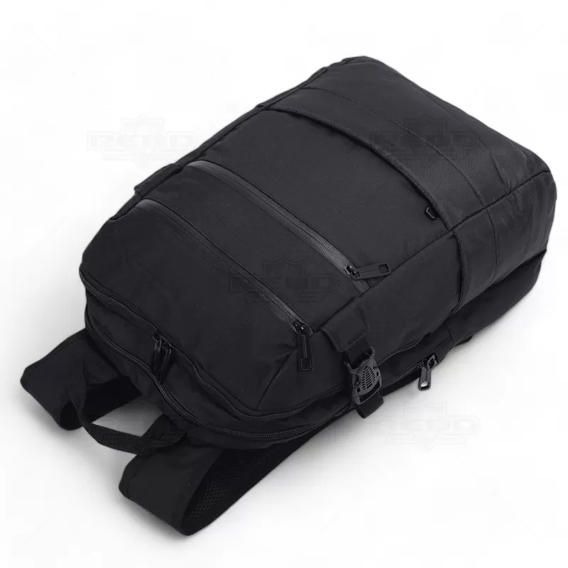Mochila para notebook em 840D jacquard e 300D com 2 compartimentos. Compartimento posterior forrado e almofadado, com 2 divisórias almofadadas para notebook até 15.6'' e tablet 10.5''. Compartimento frontal forrado, com diversos bolsos interiores. A mochila tem 3 bolsos frontais e 2 bolsos laterais. Parte posterior almofadada, com sistema de apoio acolchoado para as costas e alças almofadadas. Ideal para brindes promocionais e eventos corporativos. Imagem ilustrativa.