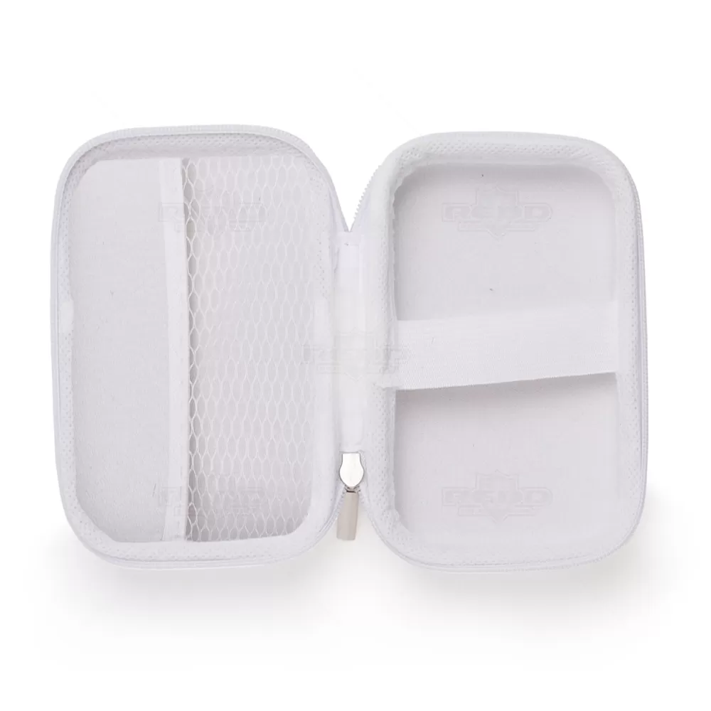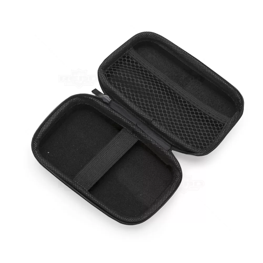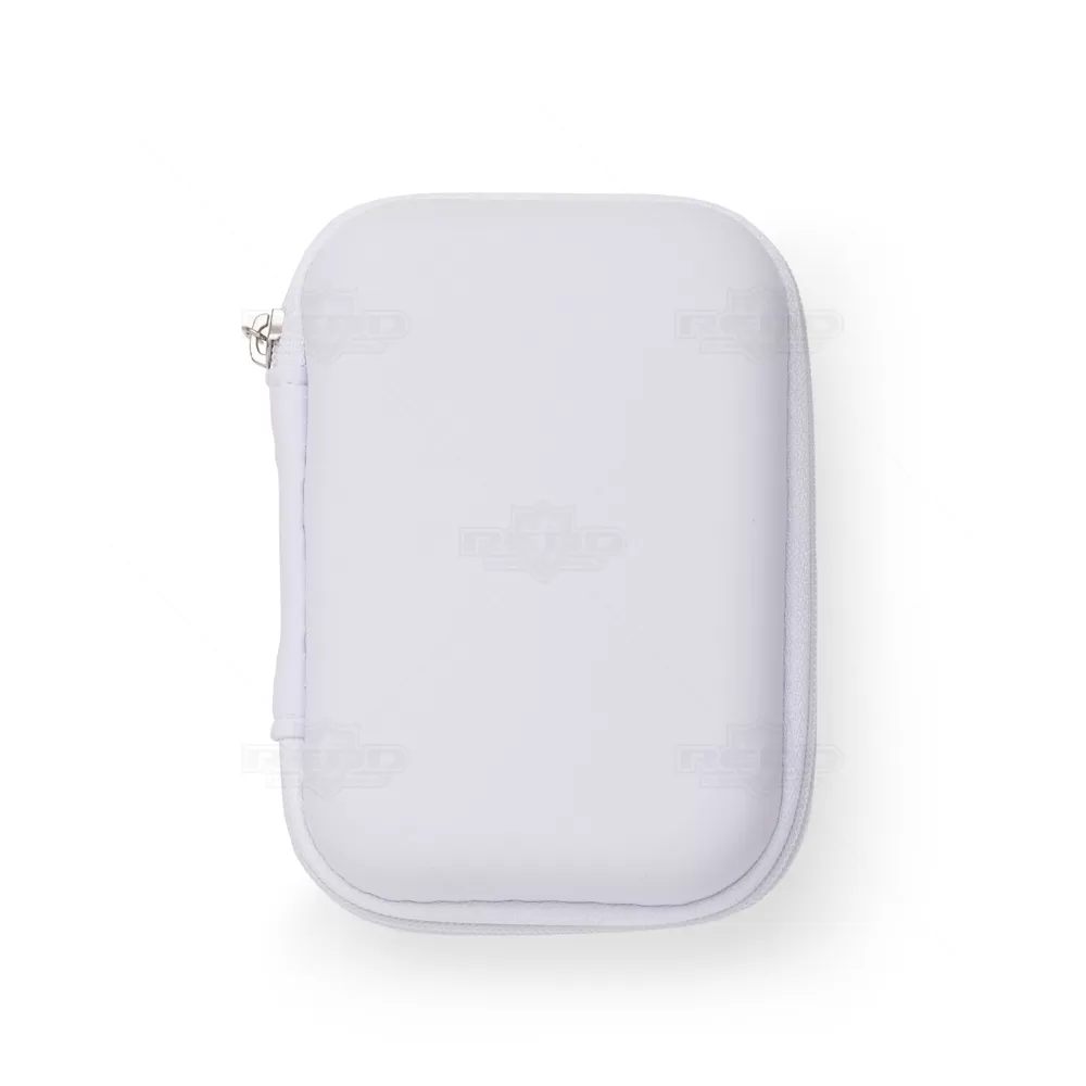 Estojo personalizado produzido em material sintético com acabamento emborrachado fosco. Possui parte interna com rede de nylon, divisória com elástico e zíper para fechamento, ótimo acessório para montar kits tecnológicos, colocar fone de ouvido, carregadores e cabos em geral. Ideal para brindes personalizados e eventos corporativos.
