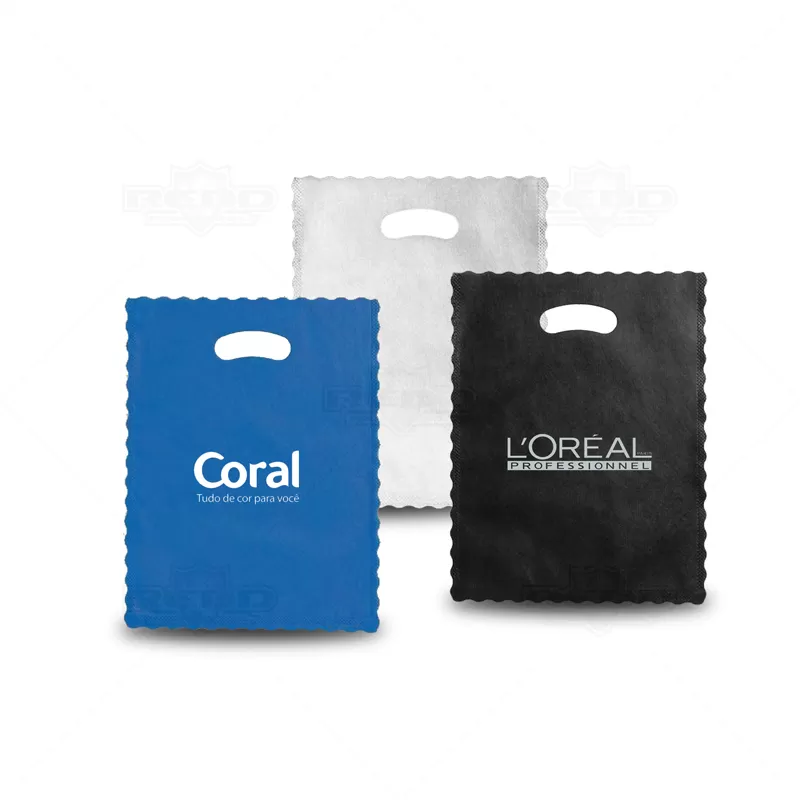 Sacola personalizada produzida em TNT com acabamento ondulado nas bordas. Possui alça embutida é de fechamento termo-selado livres de costuras. Ideal para eventos corporativos e brindes promocionais. O TNT é um produto biodegradável e aprovado pelos órgãos que supervisionam a proteção da ecologia mundial. Todos os "tecidos" não tecidos são biodegradáveis.