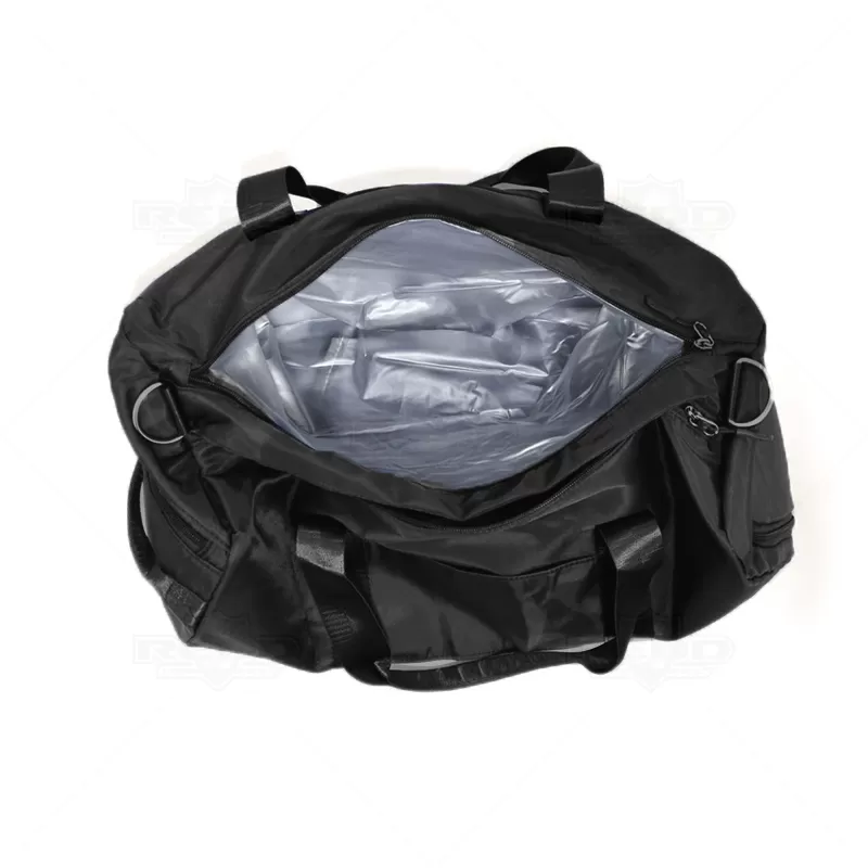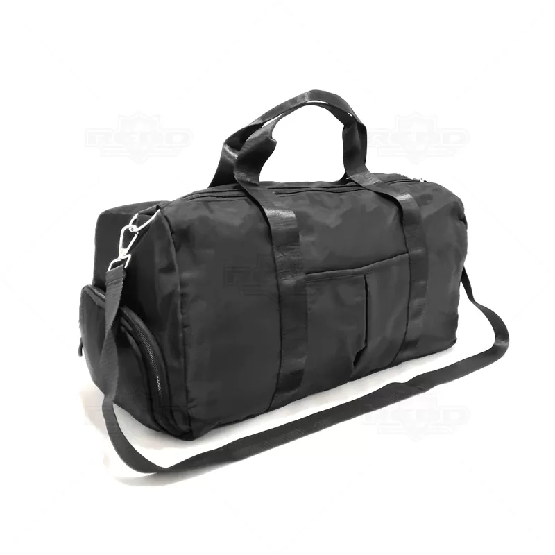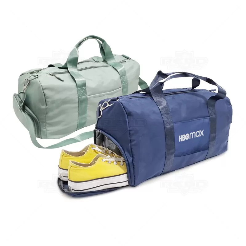 Bolsa mala esportiva personalizada produzida em material sintético. Possui compartimento lateral com alça de mão para 1 par de tênis, compartimento principal com amplo espaço inter,1 bolso lateral, 1 bolso frontal e 1 bolso traseiro, 1 bolso impermeável para roupas molhadas e o outro interno com fechamento por zíper, alça de mão em nylon, alça de ombro com engate rápido de metal e 2 zíperes duplos superiores com fechamento principal. Ideal para brindes promocionais e eventos corporativos. Imagem ilustrativa.