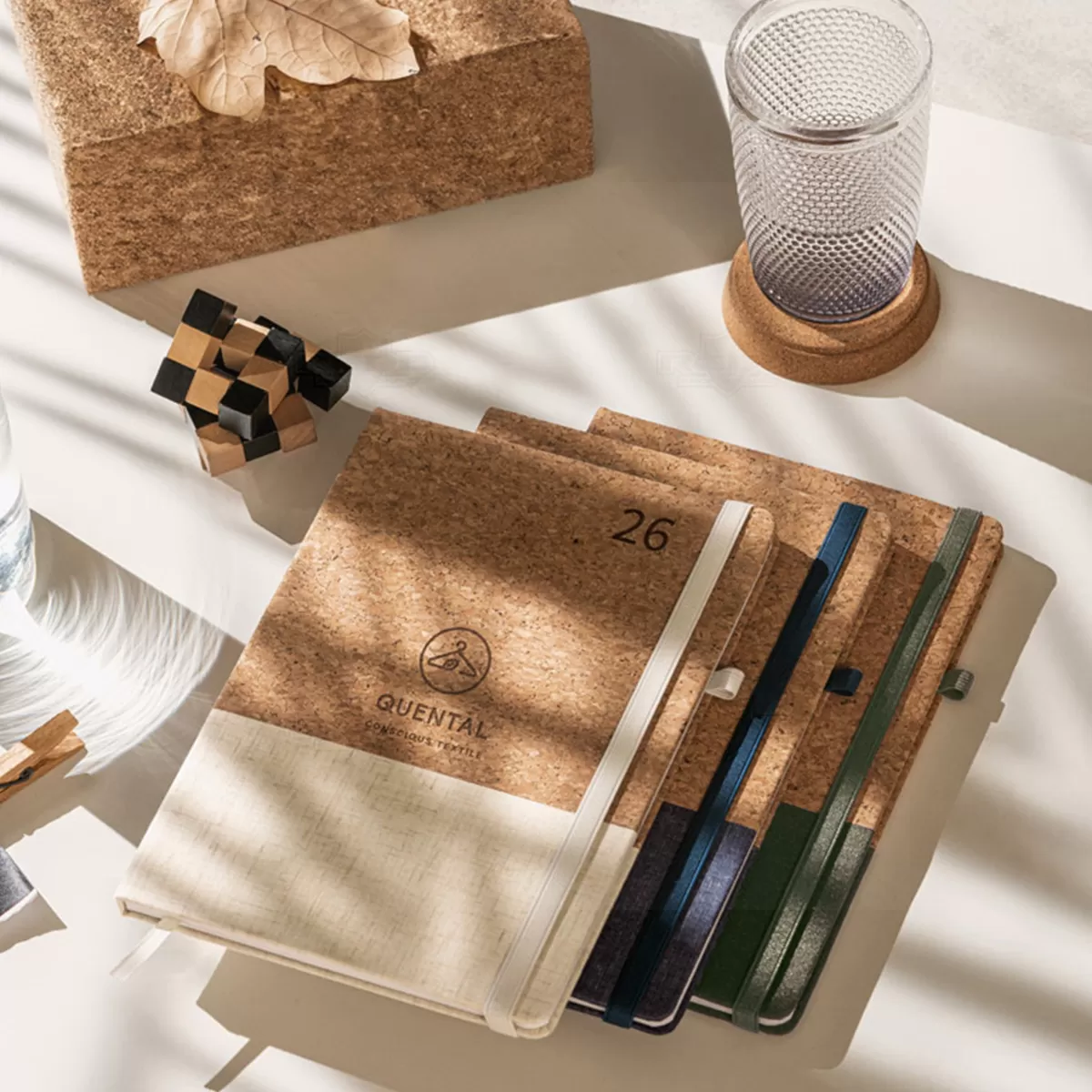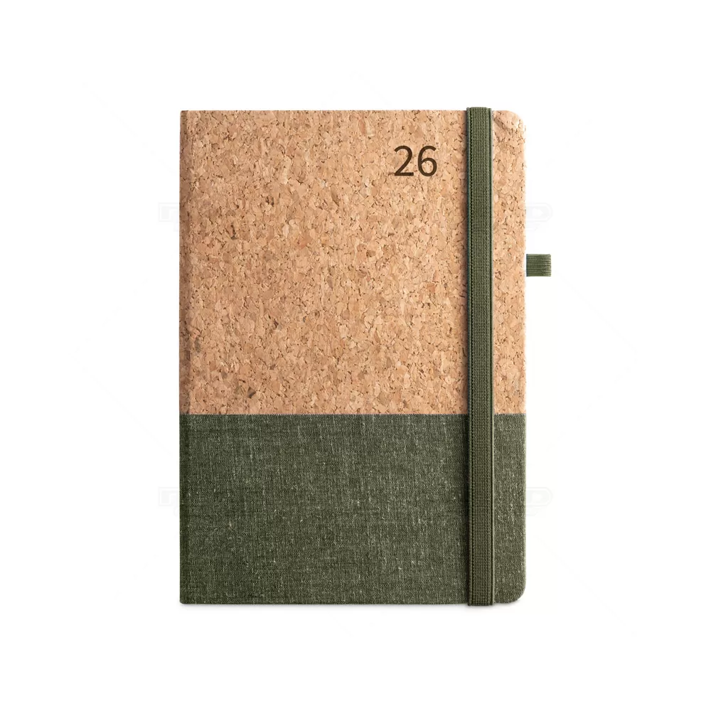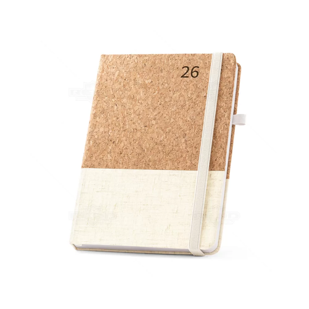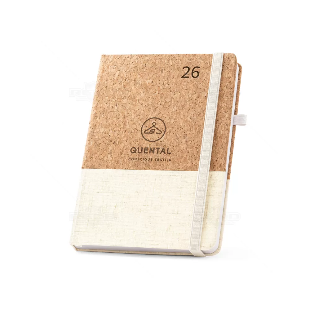 Agenda diária personalizada em cortiça e linho. Com suporte para esferográfica (não inclusa) e elástico para fecho na mesma cor. A agenda possui o tamanho perfeito para levar em sua bolsa ou mochila sem ocupar espaço, perfeito para armazenar anotações e a organização do dia a dia, em casa ou no trabalho. Ideal para ações de marketing e endomarketing.