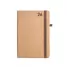 Agenda diária personalizada, produzida em cortiça. Possui plano diário, suporte para esferográfica (não inclusa), folhas em cor marfim e elástico para fechamento. A agenda possui o tamanho perfeito para levar em sua bolsa ou mochila sem ocupar espaço, perfeito para armazenar anotações e a organização do dia a dia, em casa ou no trabalho. Ideal para brindes promocionais e eventos corporativos.