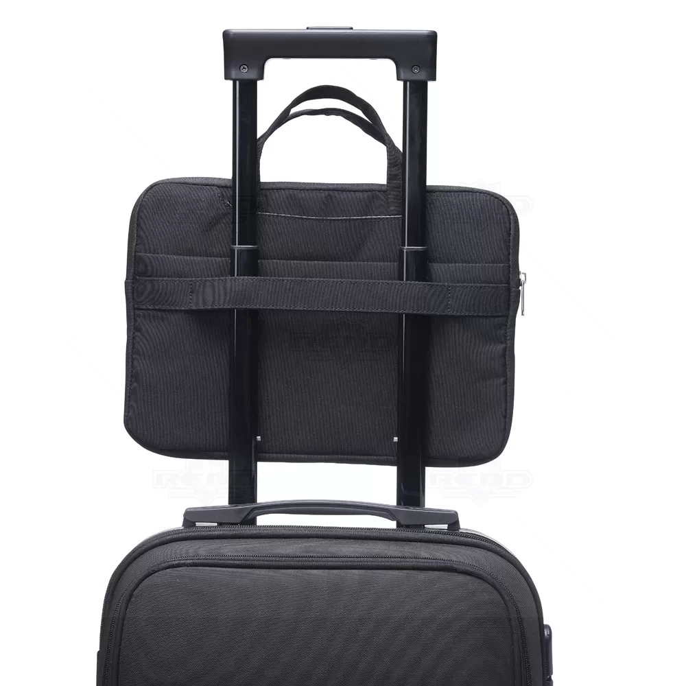 Pasta executiva para tablet e notebook 13" polegadas, produzida em poliéster à prova d’água. A pasta tem o compartimento principal com o interior aveludado para maior proteção de tablets, além de 6 compartimentos externos e uma alça. A pasta possui uma faixa traseira q pode ser fixado em malas de viagens que possua alça expansível. (não inclusa). Pasta elegante, pode ser usada para o uso diário, como para tablet, notebook 13", pasta escolar, pasta de viagem, pasta de negócios, pasta de escritório e pasta para documentos de trabalho em geral. Ideal para brindes promocionais e eventos corporativos. Imagem ilustrativa.