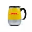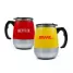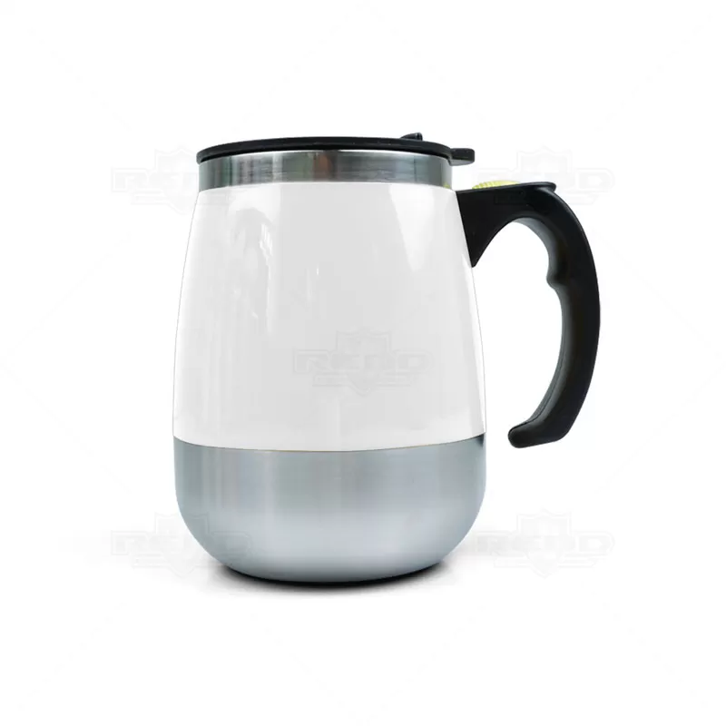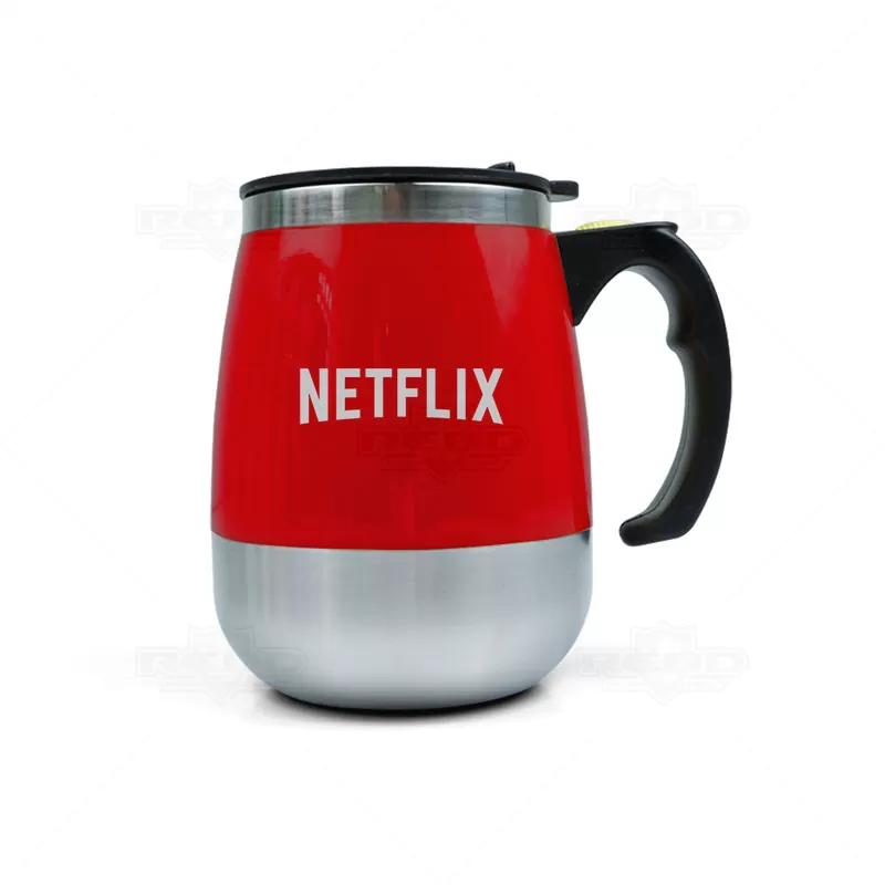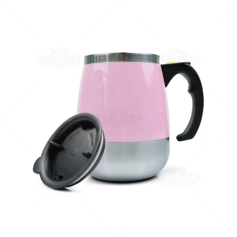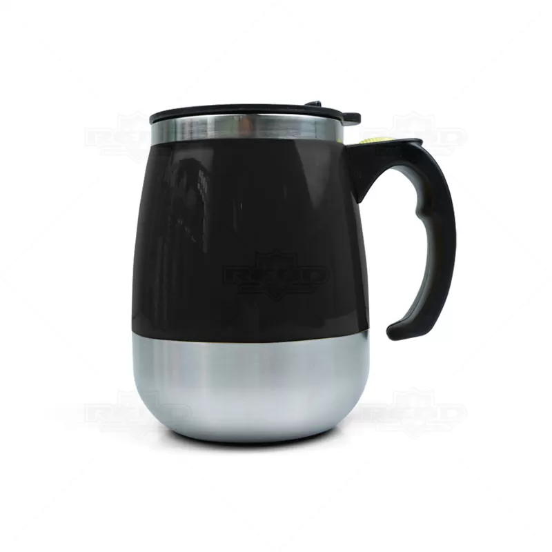 Caneca com misturador personalizada produzida em inox e plástico PP com capacidade para 350ml, possui misturador de bebida interno e parede dupla que ajuda a conservar a temperatura da bebida. Contém tampa plástica com bocal e trava de segurança e para o funcionamento do misturados, utiliza-se duas pilhas AAA (não acompanha). Ideal para brindes promocionais e eventos corporativos.