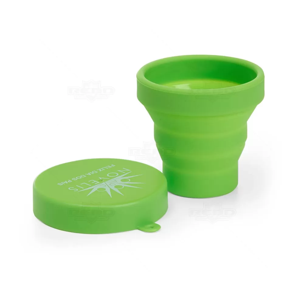 Copo dobrável personalizado produzido todo em silicone com capacidade de 150 ml, possui tampa em plástico rígido para maior segurança e encaixe lateral para chaveiro. Com um designer inovador e funcional, pode ser utilizado tanto para bebidas quentes ou geladas. Ideal para divulgar sua empresa em eventos corporativos, brindes personalizados e campanhas promocionais.