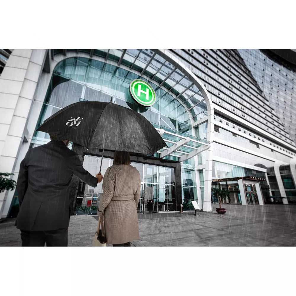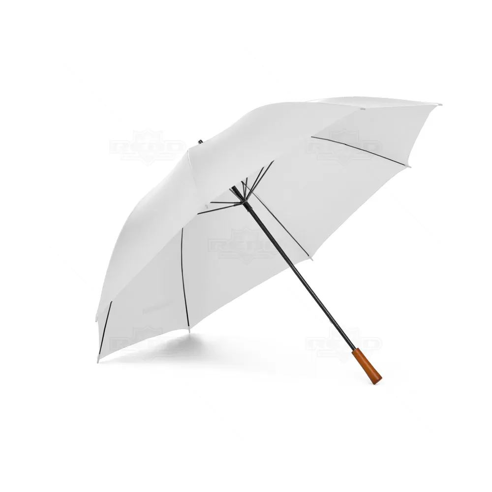 Guarda-chuva personalizado formato grande de portaria em 190T pongee para 3 pessoas. Varetas e haste em fibra de vidro e cabo em madeira. ø1375 x 855 mm. Imagem Ilustrativa.