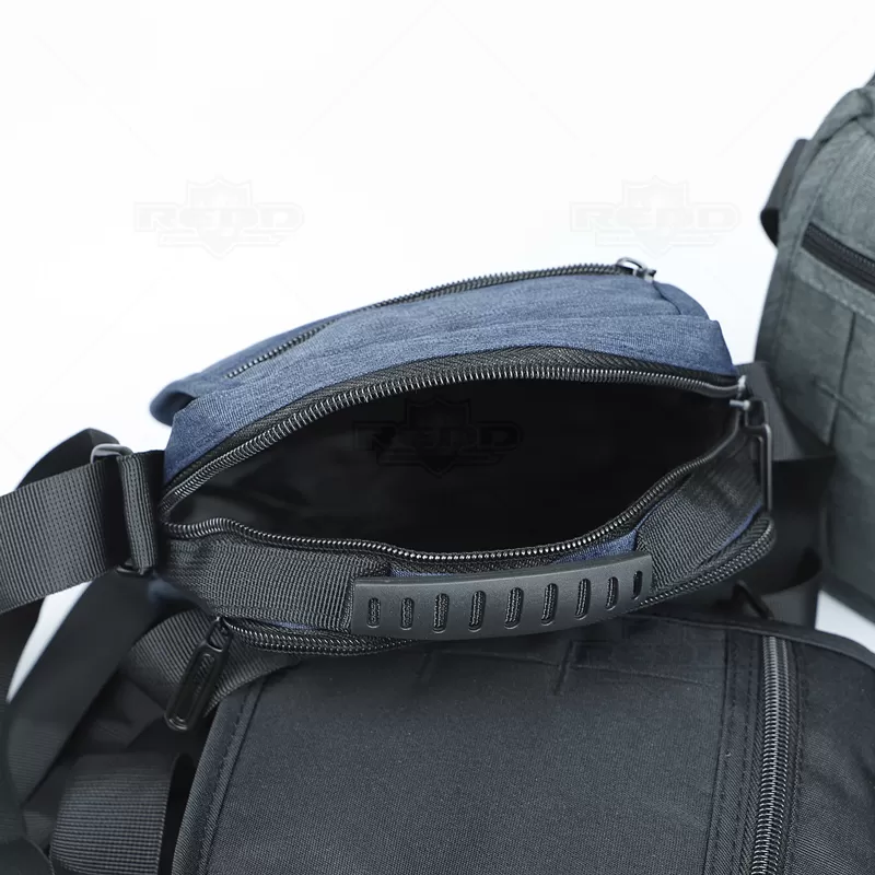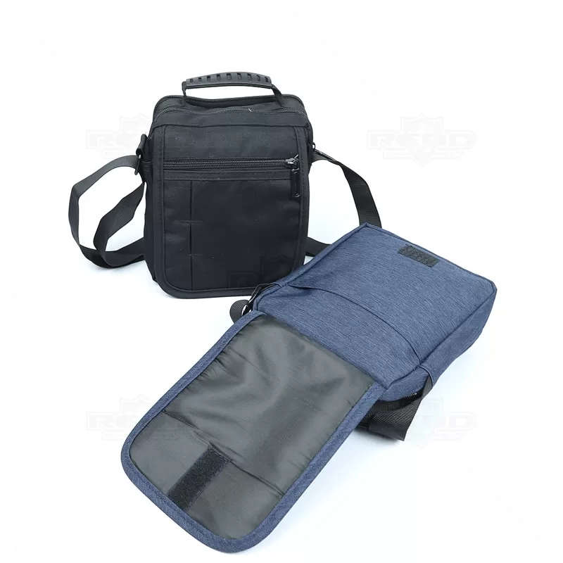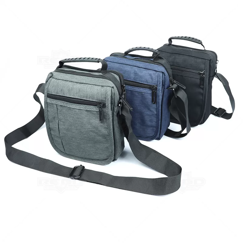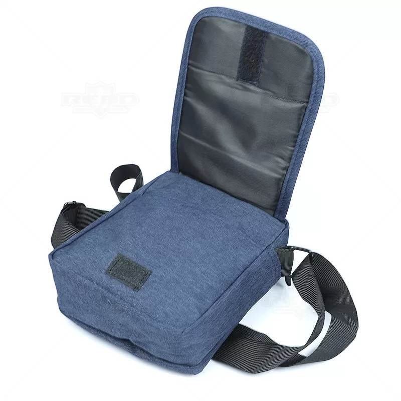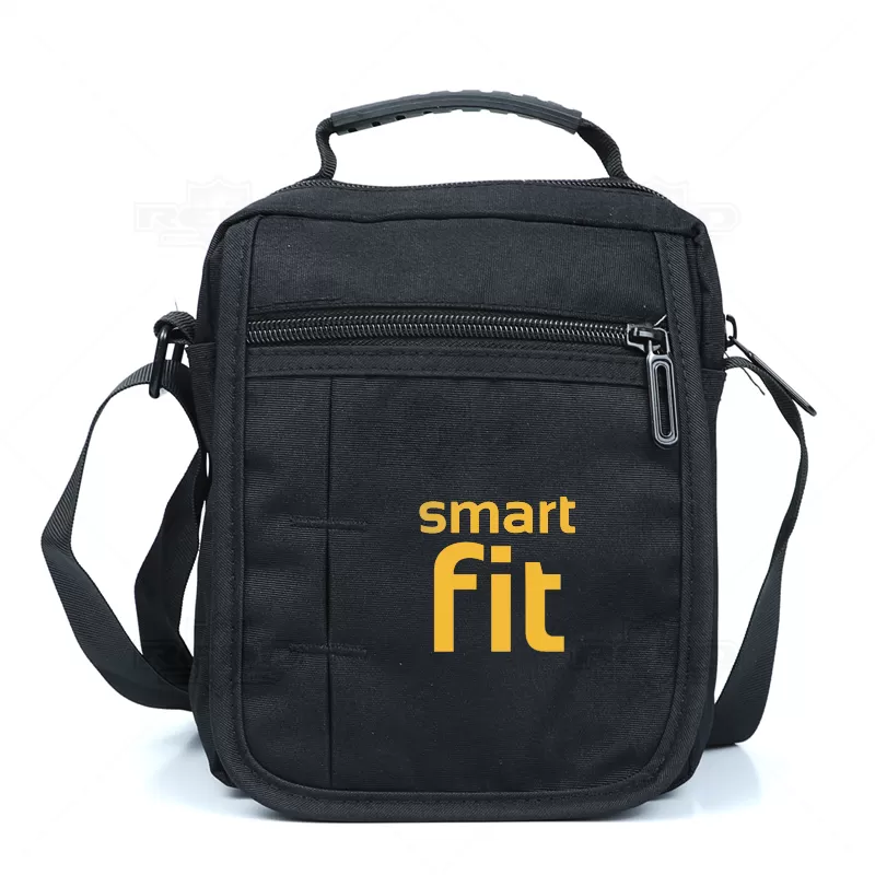 Bolsa à tiracolo em nylon 300D personalizada com alça ajustável de uso transversal e outra de mão. Possui quatro compartimentos, sendo dois superiores com zíper, um bolso frontal com zíper e outro com acesso pela aba e fechamento por velcro, ótimo espaço interno para guardar objetos pessoais. Ideal para brindes promocionais e eventos corporativos.