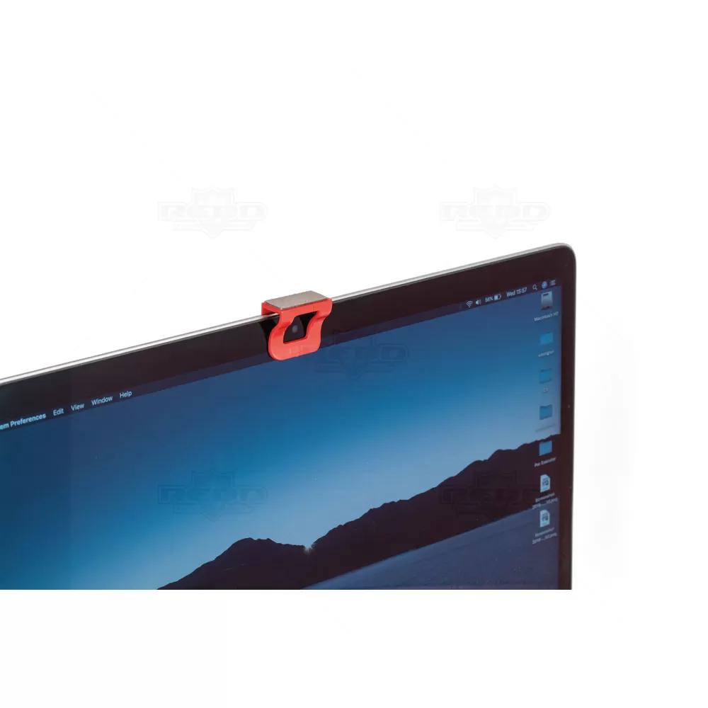 Protetor de webcam personalizado em formato clip com limpador de tela. Adequado para tablet e notebook. Limpador de tela: 22 x 10 mm. Imagem Ilustrativa.