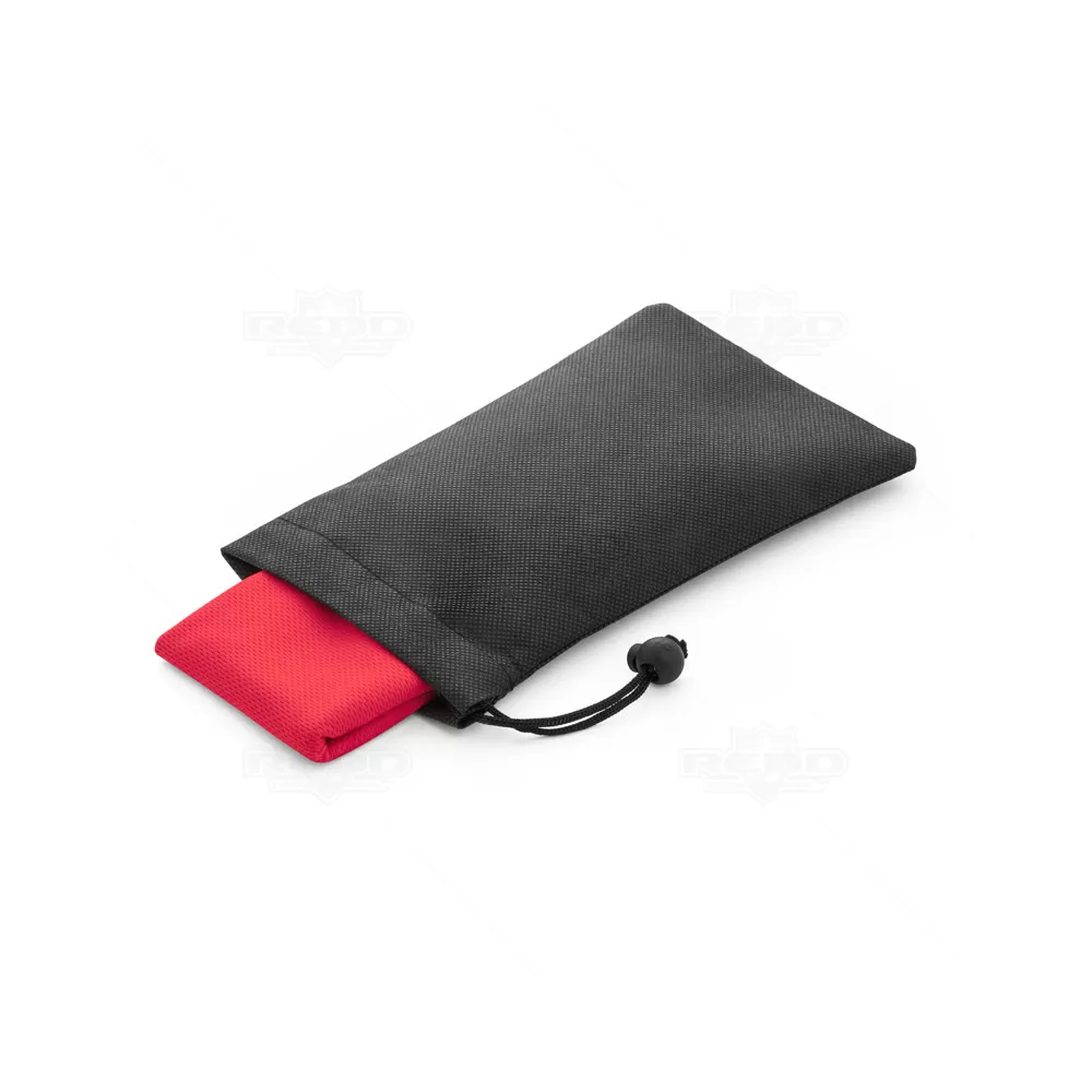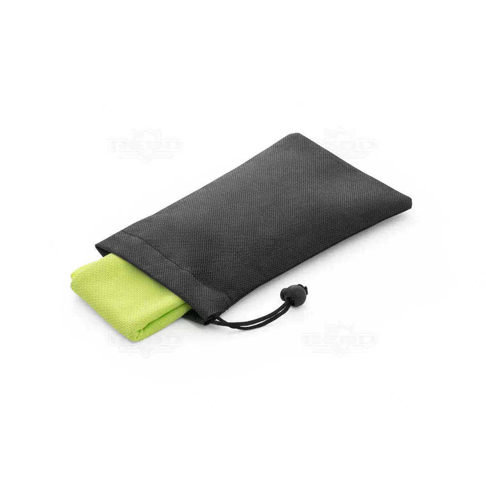 Toalha esportiva personalizada refrescante em rPET. Fornecida nem bolsa preta de non-woven. Toalha reutilizável, podendo ser lavado na máquina. Tamanho bolsa: 120 x 210 mm. Ideal para brindes promocionais e eventos corporativos.